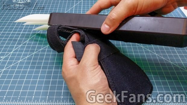 将买号的护腕和盒子下面的魔术贴贴合。