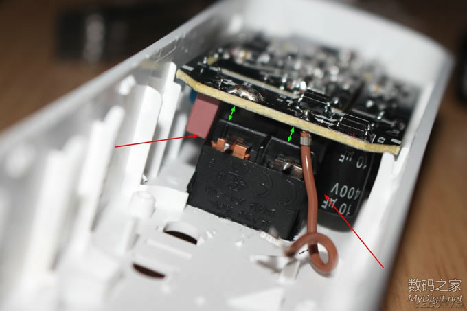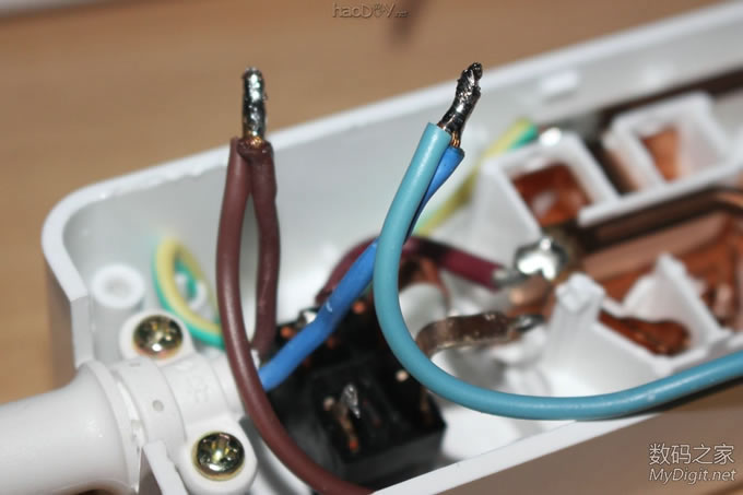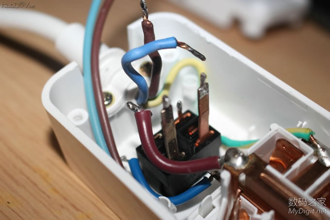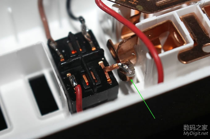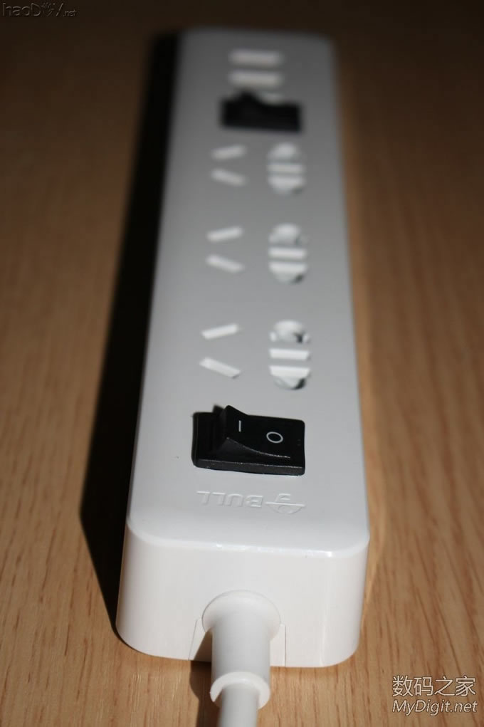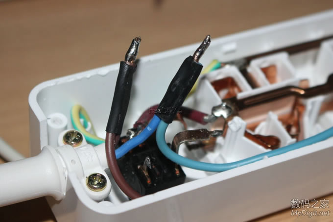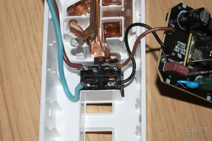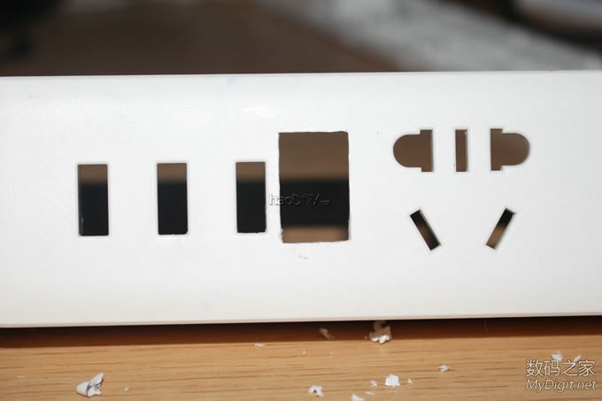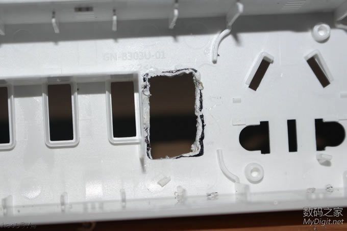 前阵子免费拿到的公牛电插座(型号GN-B303U),详见拆解贴:http://bbs.mydigit.cn/read.php?tid=1345460 ![]() 大家都在讨论和小米太像,今天就给它整容一下(图片摘自网络) ![]() 改造前来两张完整的外观图吧 ![]() ![]() 改造点一: 公牛和小米的最大区别就是开关了,公牛采用的是电子开关,通过继电器控制的。 好处是:使用微动开关 只需轻轻一按即可打开或关闭电源。 坏处是:1.外来电断电后继电器就会处于断开状态,必须手动再按一次才能通电;2、使用电子开关 也意味着有负载,即使插板出于关闭状态也有电流消耗;3、电子开关长期处于通电状态也存在安全隐患。 所以要把电子开关改造为简单的船型开关,而且是火线零线双切开关 ![]() 改造点二: 和小米的一样,USB部分没有独立的开关,也需要给它加个独立的开关 ![]() 楼下继续...... 改造前的准备 选料,选用的开关是大电流双切(火、零线)船型开关 大家都说用白色的好看,无奈我手上只有这种,专门TB购买就不值得了,不好看不要紧 实用最关键 ![]() 这种开关TB上有卖,不过像我这种引脚的就没有了,我的拆自富士施乐激光打印机(三星OEM同款), 一台打印机才拆出来一个,一共拆了十几个 ![]() 参数,8-128A? ![]() 再次把电插板拆了,详细拆解图见拆解贴http://bbs.mydigit.cn/read.php?tid=1345460 ![]() 开关定位 ![]() 开模 给开关开孔,找来电感 ![]() 需要电感上的铜线 ![]() 掰直 ![]() 绕在开关上 ![]() 简单的开孔模具成型了 ![]() 电烙铁焊接起来 ![]() 开孔 把原来的按键帽拆了 ![]() 直接就可以扔垃圾桶了 ![]() 模具出场 ![]() 油性笔标记 ![]() 作案工具亮相 ![]() 用力而又小心的削啊削 ![]() 第一个孔开好了 ![]() 还算满意,毕竟只有简单的铜丝和刀具 ![]() 安装开关 ![]() ![]() 搞好合适 ![]() 拆掉电插板原来的电子开关 ![]() ![]() ![]() 焊接引线(焊接不太理想,帖子底部有更新后的优化焊接) ![]() 把进线也焊接好,双切开关比原来的开关(甚至是小米插座的开关)都要安全,因为把火线和零线都切断了,不会因为“回路”而出现安全隐患 ![]() ![]() ![]() 第一个开关安装完毕 ![]() 效果预览,自我感觉满意 ![]() ![]()