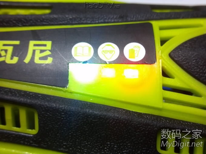先把充电钻外壳处理下,就是去掉贴纸露出孔来 ![]()