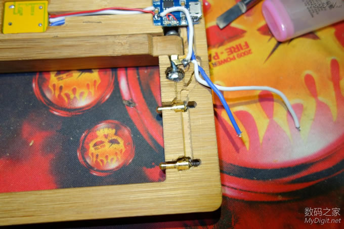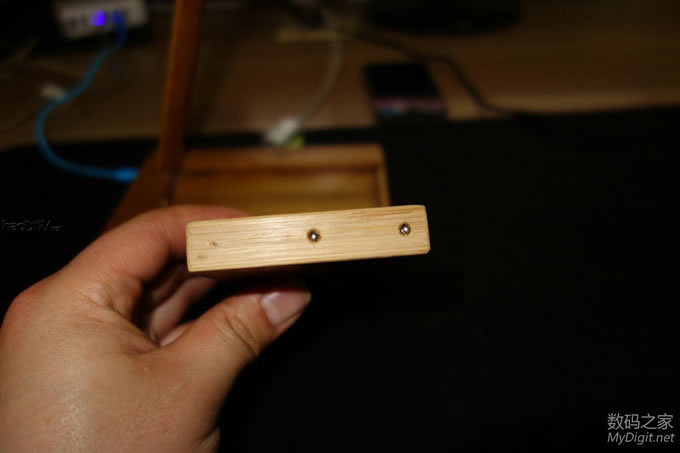 接下来雕了个支架铰链位,大家看到移动电源后面两个孔了吗,那是电池触点,设计的时候没考虑到,所以刚好在支架铰链位置,所以还得重做移位。