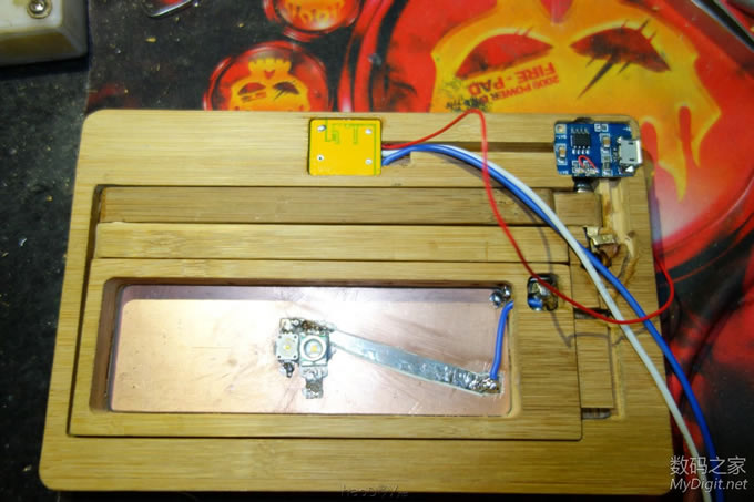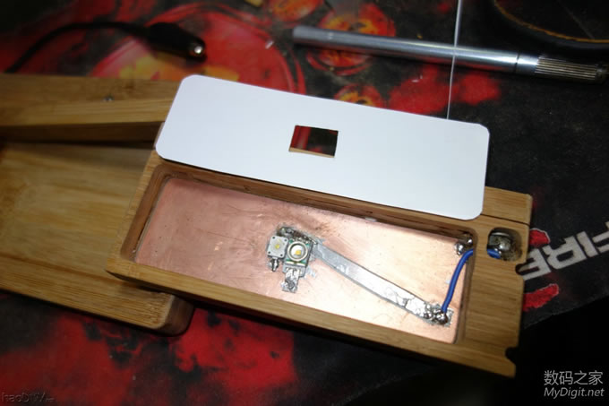 假装拿本书试试(4年前的书了 ) ![]() ![]() 看看色温吧,试拍几个物体试试 ![]() ![]() ![]() 这张还原最好,不知道是不是我拍照方法不对 ![]() ![]() ![]() 支架有些紧,所以接下来做了个抽出设计,算是补错吧 ![]() 剪了块透明塑料片,一边粘上。提起来台灯部分就出来了 ![]() 螺丝和孔都打了补丁。。 ![]() ![]() 变形合体,慢慢放下 ![]() 再下 ![]() 合上了,可以装包里带走,不占用很多地方 ![]() 底座贴了4颗3M胶垫,本来想用透明的,太厚了 ![]() ![]() ![]() ![]() 和没蓝比比大小,真的大不了多少 ![]() 只是厚些,哈哈,整体在16MM左右 ![]() ![]() 忘了拍外部供电照片了,补上 ![]() ![]()