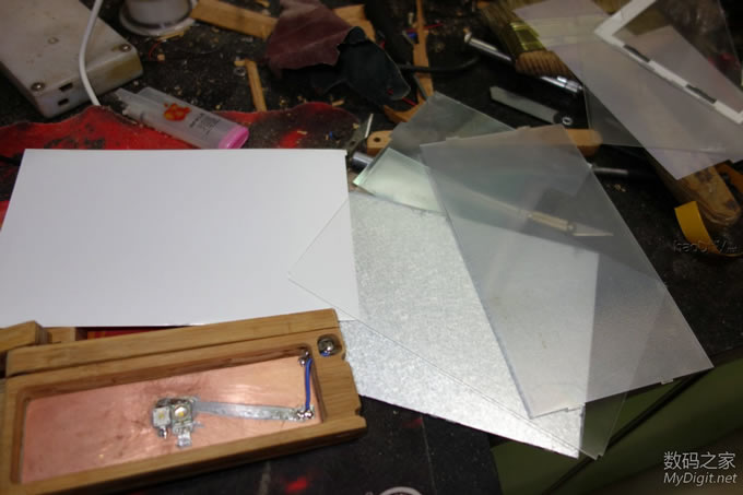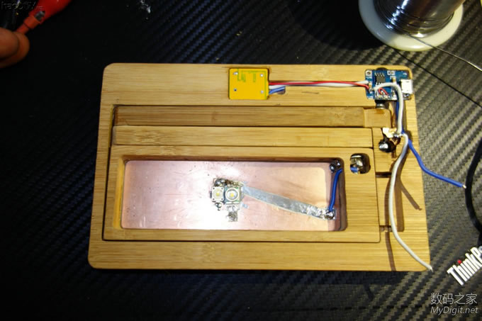 主体部分还未完成,先把灯光搞定吧,本来打算用一颗LED的,但要么就很白,要么就很黄,好吧,黄白结合,来个双色温,1A电流下,3W多点了几个小时,由于使用的是铝基板,所以温温的,散热没问题