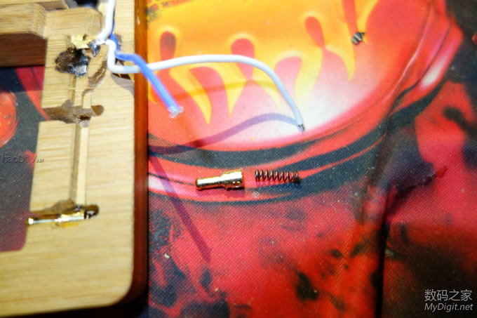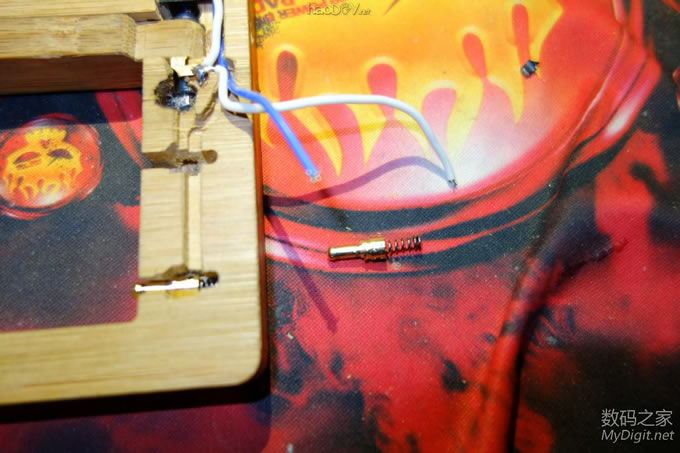 铜环折叠90度,支架上打孔把多余的极片放进去,固定再次加强 然后是连接支架,找不到长些的M3螺丝,找来些旧的M4,还有钢弹垫,铁垫片