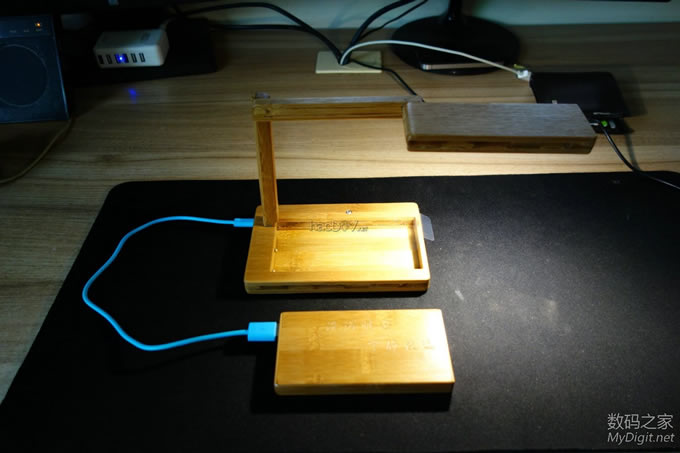 之前做好的移动电源,放进去,可以看到框架比移动电源大一圈,这也是为了容错和插拔。