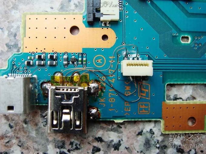 排线比较多而薄,注意取下时细心操作! ![]() ![]() ![]() ![]() 几个角度仔细看一下这块电路板 ![]() ![]() ![]() ![]() ![]() ![]() 模拟看看和外壳结合的方式 ![]() ![]() ![]() ![]() 与mini USB插座的对比 ![]() ![]() ![]() 焊下REMOTE座 ![]() 继续对比看看 ![]() ![]() 刮掉1 2 3处蓝漆,4 5处开小孔 ![]() 焊上mini USB插座 ![]() 这里只好飞线了 #p#分页标题#e# ![]() ![]() 反复和外壳开口对比,以修整合适的开口 ![]() 然后组装回去 ![]() ![]() ![]() ![]() ![]() 先连接电脑试试 ![]() 可以看到文件了 ![]() 照片没有问题 ![]() 播放一段录像也可以 ![]() 安装上外壳 ![]() 之前已经对开口修整了 ![]() 盖上护盖没有什么异样 ![]() 相关部分的原理图 ![]() ![]() ![]() USB引脚的定义 ![]() 补充:板上1和5这两个点可以短接,因为在焊下的座子内是短接的。不短接也没有发现异常影响。 ![]() |