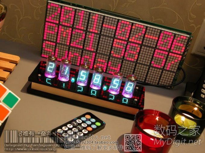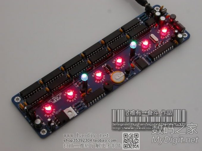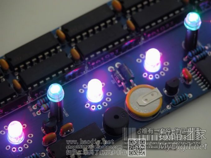 新春头一贴,先给各位朋友拜个年 从虎年腊月到兔年正月,饱含了我对时钟所有期待新作品终于制作完成。 在这之前从LED到辉光管再到VFD点阵、从石英晶体到温补再到GPS校时,还是那句话:时钟虽简单,想做完美不容易... 这次的DIY作品从设计之初就考虑到了很多功能上的细节、操作上的细节、效果上的细节,以前我对SMD情有独钟,这次头一回全部采用直插元器件(只有一颗DS3231采用贴片),每个元器件的选型、位置、大小、高度,甚至是立着放还是躺着放都经过了周密考虑。电路板每个元器件的封装库都根据实际元器件大小测绘,没有一个焊盘位置与实际元件有差别。以前在制作电子钟的时候,不少朋友提出了忠肯的建议和意见,也为这次DIY提供了原动力,所以在人性化操作和功能方面比较完备。至于炫彩的七彩背景光效,还有近4000行代码所编辑出来的Crossfade等数字变换效果等等只能从视频上才能看出... 也欢迎大家访问我的BLOG,里面有历次我的时钟作品,包括辉光管的、LED点阵的、VFD点阵GPS校时的等等... http://blog.sina.com.cn/nixieclock 我就先介绍一下这次DIY作品的一些功能和特点,然后再具体介绍一下DIY设计过程【有图片、有视频】,重点部分的源代码我也会公开,希望能与大家一起交流。 老规矩,先上美图,SHOW TIME: