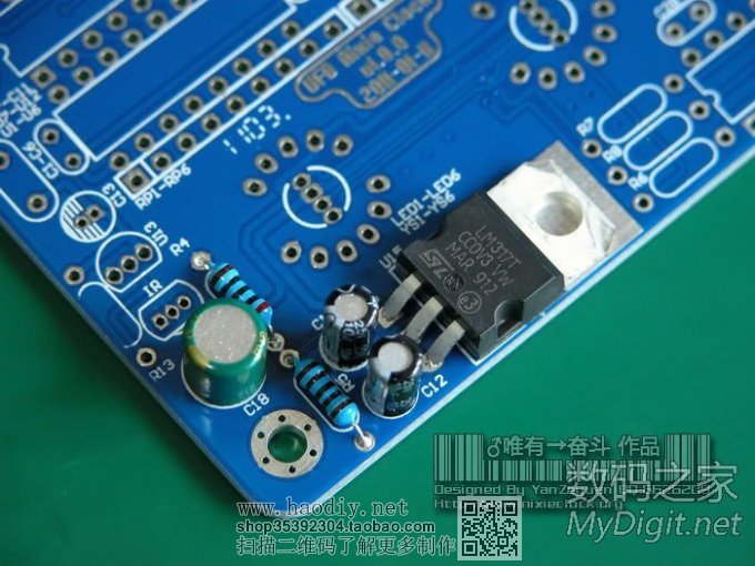先从空板开始焊接开始,由于全部是直插器件,焊接几乎没有任何难度,插好器件,焊上焊锡,剪掉多余的管脚,只要IC和电解电容以及二极管不焊反,几乎没有什么问题。 收起来SMD的家伙,拿出来直插的家当,准备开始动手: SHOW一下: