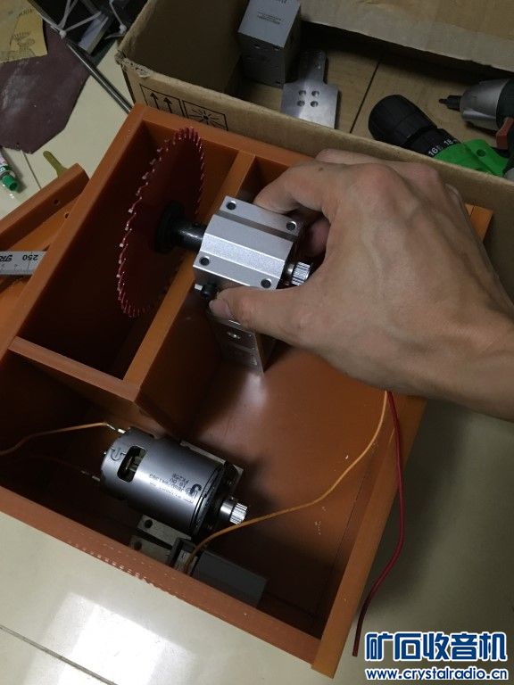 前段时间买了些铝板 电木板 光轴,滑块,电机等等材料,(目前还剩下一部分材料,等想到做什么了在做 ) 这段一有时间就开始DIY了,前几天做了个小台钻,本身我工具就比较多(本人做工地的,工具较多)想来想去不知道做什么好,想到自己喜欢DIY,特别是做外壳,组装功放啊 白光电烙铁啊,可调电源等等都需要外壳,做外壳经常要切板子,木板亚克力板,铝板PVC板等等,所以需要个小台锯就方便很多了,当然我收电锯切割机之类的多的是不过搞这些小东西去仓库动手麻烦那些手拿的电动工具也不是很好用,毕竟没有台锯好用,于是乎就DIY了这么个东西。下面将详细介绍制作过程。照片拍的很多,所以可能比较乱,坛友们将就看吧,下次DIY锯材料的时候上段视频给你们看