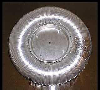 3. 包裹金币巧克力的那种较厚的铝箔起首将平底金属盘底对底用螺丝牢靠如上图,接着将铝管盘成圈状,使其正好能卡在平底金属盘制作的骨架上,铝管的接口口处用铝箔封口,接线点定位在平底金属盘骨架中心,组装好制品,至此特斯拉线圈的全部重要部门已经完成。