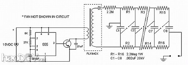 换成廉价的高压产生器往后,整个别积就袖珍下来了,可以所有装配在一块小木板上。必要留意的是高压晶体管轻易发烧,必要配块大点的散热片,最好还装个小小的散热电扇。这 款高压产生器可以拉出10厘米长的电弧,够你乐一阵子了!