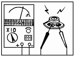 3.测电容(C),要领见图2-6-6。表棒刚触及电容引线时,指针用小幅度摆动后回到原本位置四面。