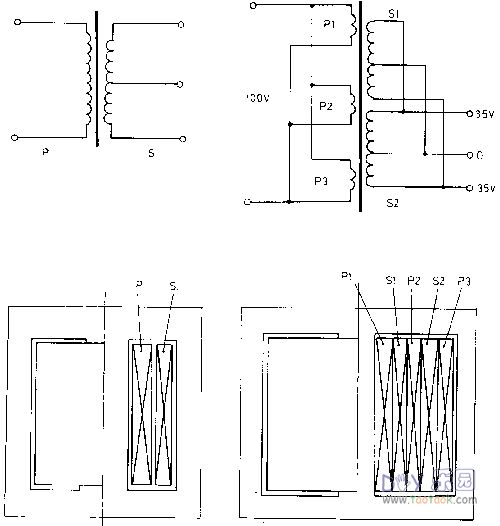 这种分割式绕法在变压器容量越小的场合,改善效果越明显。上述是以EI铁芯作实例来说明,环形,R形铁芯等道理是一样的,各位朋友们可根据以上的方法进行绕制自己心目中的发烧级变压器。
