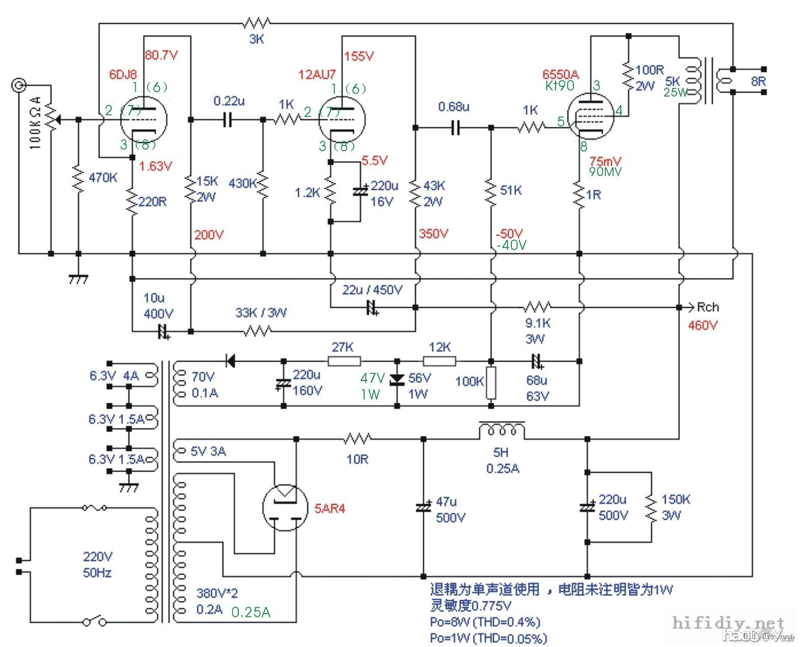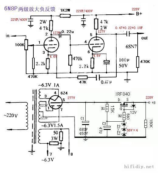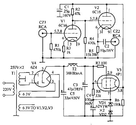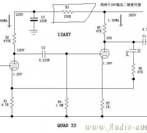 马兰士7胆前级: 请结合原理图稍有修改 ![]() ![]() 12au7+6v6推挽胆机: ![]() ![]() 6dj8+12au7+kt88(kt90 6550)单端胆机 ![]() ![]() 6C16前级 ![]() ![]() 6SN7前级JB ![]() QUAD22前级 电源部分参照M7 ![]() ![]()