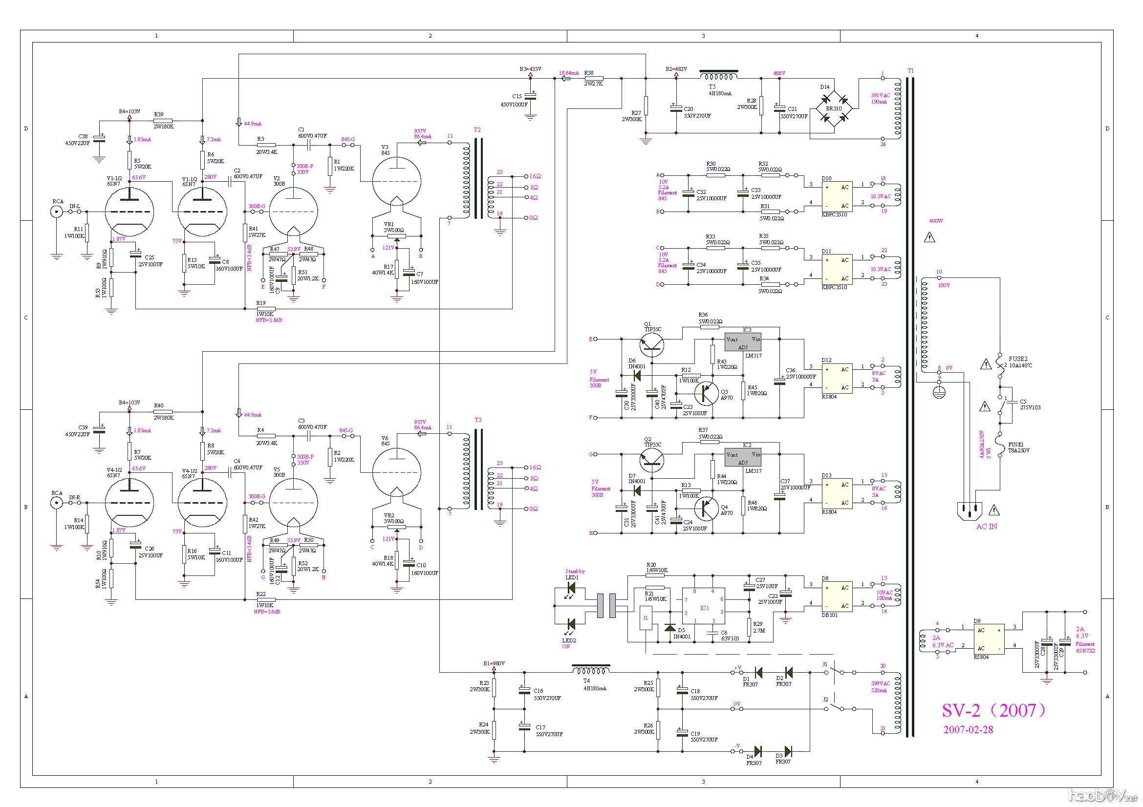 6sn7+300b+845电子管单端胆机功放