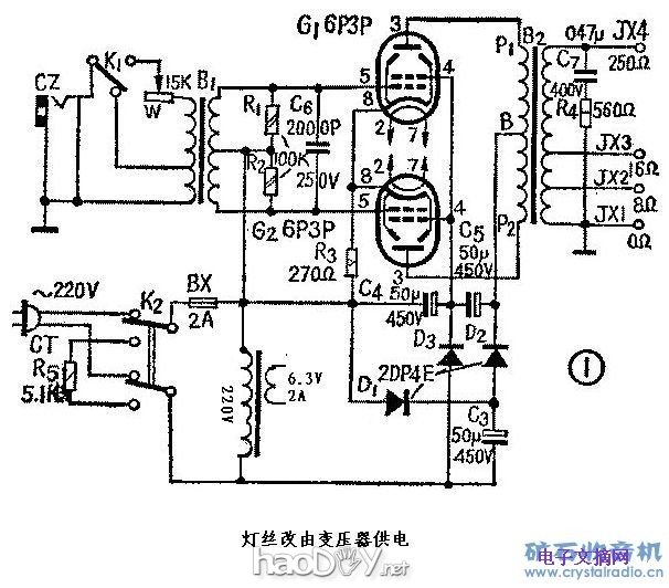 灯丝电压0-15V可调,两个317并联可达4A.B+现用变压器加调压0-450V,准备改用开关电源,电...
