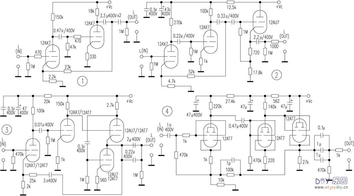 近几年,胆机又逐渐被人们认可和接受,在发烧圈也掀起了一股胆机制作热潮。而在胆机中,胆前级因线路简单,调试容易,因而制作成功率相对较高。由于发烧友大多数已拥有性能不错的晶体管后级,搭配一台极品胆前级,可以帮助你迅速进入发烧境界。“前胆后石”组合或许更适合大多数发烧友的口味。这里推荐几款极品胆前级电路供发烧友参考。以下电路均为双声道设计,仅给出一个声道的主体电路,另一声道图略。<br> 1.马碲斯胆前级 原理图如图1所示。该线路仿英国马碲斯“Reference”电子管前级,马碲斯胆前级是以其卓而不群的设计观念,至纯至真一尘不染的透明音质闻名于世。其线路是胆前级中性价比较高,也是最易装配的一种。其用12AX7与12AT7作两级放大,具有输出电流大、全频表现平均、分析力高、音质感强等特点。 发烧友还可采用并管的方法来摩此电路(可参考后面介绍的JADIS电路),这时左右声道各用一只12AX7与12AT7放大(外围电阻稍作调整),其声道分离度更高,音色更美。 2.改进型马兰士7胆前级 原理如图2所示。该线路用12AX7作两级放大,后接12AU7阴级跟随器作为信号缓冲。众所周知,马兰士7胆前级以其中频甜美而著称。但其分析力及高低频延伸度欠佳。针对传统马兰士7胆前级的不足,对耦合电容容量的选取以及负反馈环路的选取作了一些调整。改进后的马兰士7胆前级,高、低频重放有了一定的延伸度和力度感,但中频更佳。该胆前级最适合听人声与弦乐。 3.和田茂氏胆前级 原理图如图3所示。针对传统马兰士7电路的一些不足,日本人和田茂在马兰士7电路基础上进行改进,改进后的电路称之为和田茂氏电路。其主要特点是用SRPP电路代替了马兰士7电路的阴极跟随器。由于SRPP输出级并没有任何电压放大作用,只是作为一个缓冲级使用,比起普通的阴极输出器来说其驱动负载能力更强。在音色方面,它保持了马兰士7线路中频甜润的特色,其分析力与高、低频响应比马兰士7较佳,信噪比相对较高,该电路所用的电子管也可全部改用12AT7。 4.JADIS胆前级 原理图如图4所示。该线路取自法国“JADIS JP2000”旗舰前级经典线路。其采用12AT7作两级电压放大,并用12AT7作阴极输出。使前后级阻抗能很好地匹配,并提高负载能力。为了得到较大的输出电流和较低的输出阻抗,该电路将双三极管并联使用,这也是其特点之一,其音质醇和通透,比马兰士7更具有浓烈的音乐味,高频与低频也明显胜于马兰士7,最适合欣赏古典音乐。 图5是一款简单易制、性能出众的胆机稳压电源。该线路结合了电子管与晶体管的特点,取长补短,同时也降低了电源变压器的工艺要求。高压采用日立场效应管稳压,灯丝采用直流+12.6V供电可进一步降低整机噪声,以上胆前级除改进型马兰士7外(该板为胆整流、胆稳压、主板、电源一体化大板双面镀金设计)均可与该电源板搭配使用。 对胆机制作,一些发烧友特别推崇搭棚焊接法。但对初学者而言,成功率不高,噪声较难处理,且纯手工制作,产量不大,不适合批量生产。笔者认为:胆机要想得到普及,应走与线路板装配生产相结合之路。笔者使用的线路板由专业线路板厂家制作,主板为加厚双面孔化镀金玻璃纤维板,而电源板为单面玻璃纤维板,便于摩机。板上印字清晰,只要稍懂无线电基础知识,哪怕你从未装配过胆机,按印板所标数值装配,确保你一次装配成功,所装整机的性噪比均达到或超过搭棚焊接的同类产品。夜深人静时把音量旋至最大,耳贴近音箱仅听到轻微的胆管本底热噪声。 俗话说:“好马配金鞍”。胆机制作中,元器件的选取也至关重要,为确保质量,建议均采用全新器件制作。笔者使用厂家提供的套件,电子管为国产出口型产品,电阻为2W、3W美国电阻,如DALE电阻、AB碳阻等。而电容4.7μF/400V以下则选用音乐味浓的法国苏伦大SMKP电容,电解则选用ELNA、ERO、SAMWHA、Rubycon等品牌。变压器则有A级材料制作的100WE型和R型两种规格可供发烧友选择。对于相关部件如音源选择、音量控制,也有多种方案可供选择,如继电器音源切换,手动音量控制板、顶级音量遥控板(继电器切换不同阻值的光敏电阻),镀金输入、输出端子、豪华机箱等,这样组装的整机,无论音质或外观都毫不逊色于一些高品机,改变了“土炮”产品登不了大雅之堂的局面。 装配时,参考原理图,采用含银量较高的优质焊锡丝把所有元件焊在线路板上(包括电子管管座)装好主板及电源板,用万用表测量电源板输出直流高压应在+250V左右,灯丝电压应在+12.6V,若电压正常,检查主板元件装配无误后,即可装好主板电子管,连接好电源线及输入输出插座即可试音。若试音正常后,即可把所有器件安装到胆前级机箱内。整机组装完成后,就可以慢慢品味发烧胆机的醉人音色! (责任编辑:admin) |
