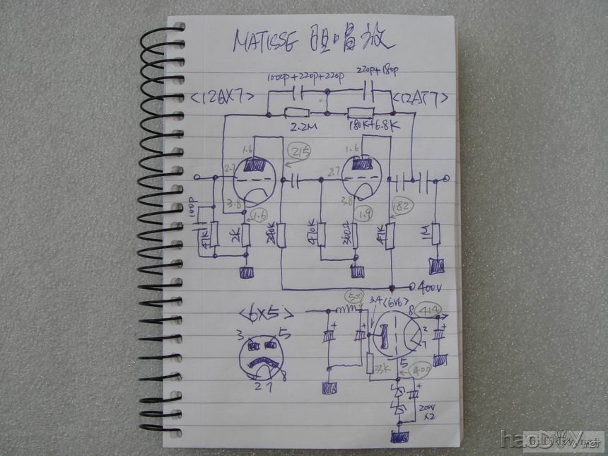 成功开声,而且很靓声,接6V6 P-P合并功放,音量在12点位,耳距喇叭(92dB)30公分外完全听不见噪音,应该还可以更好,改进中 ,线路的返馈网络部份是老猫版为我从新计算及优化 ,结构及用管是Matisse Reference的黑胶唱放部份~