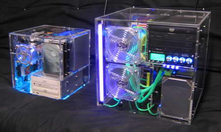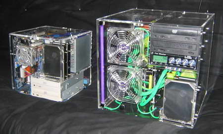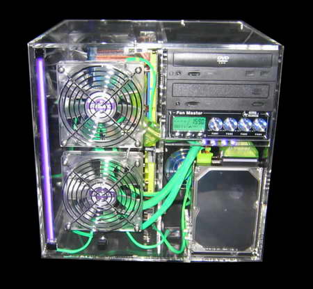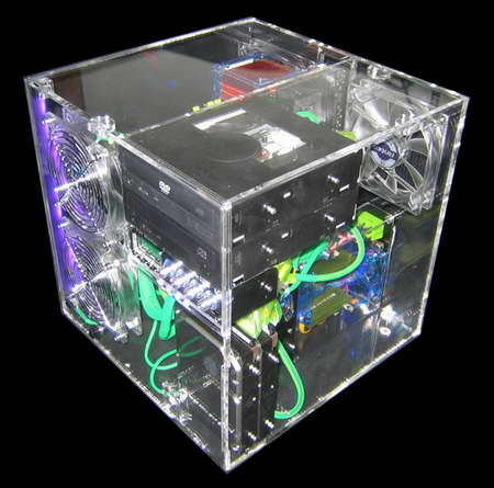 透明机箱机箱大家也许已经见过不少,另类的造型你又见过没有呢?前不久就有一个公司推出过一款酷似007万能公文包造型的透明机箱,想必大家还有印象吧? 人类的创意是无穷的,很快就有玩家造出了以下这款设计成立方体的透明机箱,看看是否也合你心意? (责任编辑:admin) |