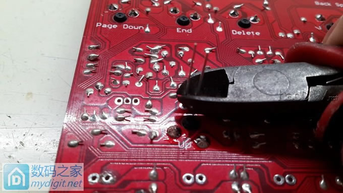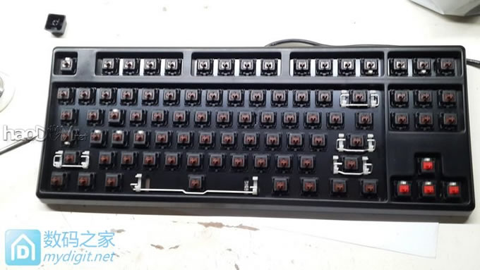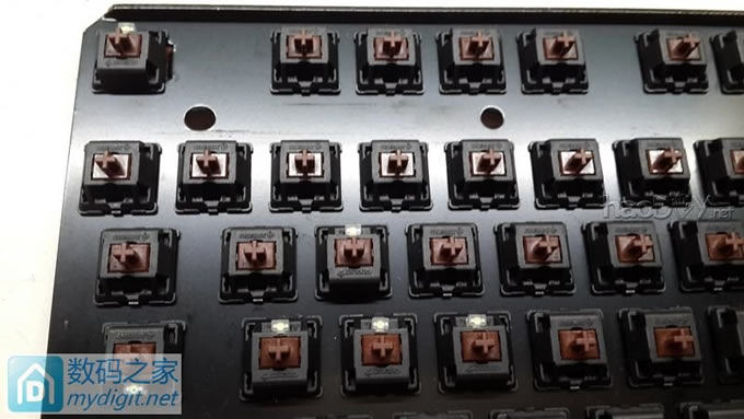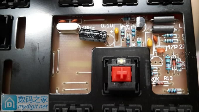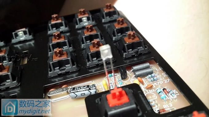 | 今天的猪脚,蒋蒋  ,二手的凯酷K5 这款没有灯位,坛友收的,算上运费只要58。   这把即将开刀的键盘是我的第三把机械,由于第二把是改灯的机械,所以第三把准备换个玩法。     先晒晒第二把,DIY的全过程没有拍下来就不单独发了。这把是红、青混轴,混光LED。 回到主题 继续,换个姿势来一张    USB线不是可以插拔的那种,螺丝在高度调节板的USB线口 的下面。  差点忘了最重要的,晒晒我的垃圾装备,看我这记性   接下来,拆螺丝 ,这张图糊了,别介意   轻轻的撬开暗卡,一共8个 前4后4   露出电路板,USB线用了一个扎带固定   剪掉扎带,电路板全貌   背板,好大一坨胶固定   再换个姿势    拆下上盖     接下来,准备开始拆轴,  板子换过轴,但是这手艺真不想说什么,估计某网管自己动的手。     拆轴,介于旧的焊点氧化了不太好化锡,可以边加热变送点新锡。 后面直接省略100字……,没什么好说的,拆轴就是个技术要求不高单考研耐心的过程。 3个多小时过去了…… 终于… 终于抽干净了  检查一遍没有漏掉的之后,翻过来----拆!  轴的上下两头卡子往里一按,在往上一顶 出来了……  来张放大的,是不是很脏,待会来点带劲的伺候。 拆完轴,然后分开电路板与金属固定板…… 这么叫金属固定板呢?废话,这玩意用的压根就不是钢板  先来洗个澡  某利牌厨房专用油污清除剂,洗刷刷啊…洗刷刷  先把金属固定板刷干净了,然后晾干,是不是很干净 神马的烟灰 黑暗物质都没了。啊哈哈   然后,懂了吧    换个姿势  洗干净了,晾干   是不是跟新的一样  接下来,开始装轴。 废话当然是新的,当然是原厂的 我刚从新的轴板上拆下来的。 算下来一个轴1块都不要,一般人我不告诉   和上面一样,过程不要,咱只要结果   上次剩下的红 废话不多说,装装装   未完待续……  除了方向键用红的,其他的全茶 焊接固定,这个简单,15分钟全搞定  来张细节图  轴装完了,再来装LED,注意旁边还有个三极管的位置,那是给部分灯预留的  白色高亮,20mA的  插进去#p#分页标题#e#  再进去点   反过来剪掉,焊接 完成后的效果   至于刚才说的三极管,手上没有原型号的,就找个0550的替代,单基于后面装键帽不美观,有吧三极管拆了,不要灯亮。 注意:看我手上的,别看到下面的元件箱去了,那里没有。  好啦好啦,装好了,接下来可别全拼起来了,先测试  不错,一次全触发,可以装起来上螺丝了。 下面是后两天到的键帽  白色PBT,侧刻 当然还有彩虹的 功能键  装好的效果,还可以吧。之前彩虹的装上不好看,拆掉了,只留了功能键。  好了好了,第三把键盘就这么完成了,是不是自己也想搞一把玩玩?  未完待续…………