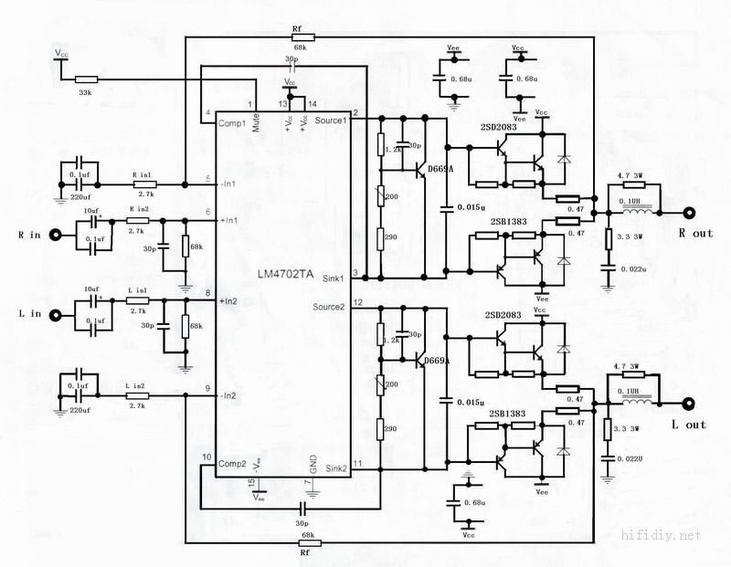 国半推动集成LM4702推2SB1383/2SD2083功放