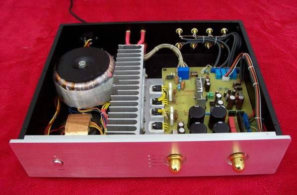 自一年多前,笔者仿制了PASS A5后,已大大降低了再制功放的欲望。但多次从《无线电与电视》中看到国半最新推出的高性能运放LM4562与功放推动集成块LM4702的性能是如此优秀,受强烈好奇心使然。抱着试试的态度,用了近一个多月的时间慢慢的打造了这款合并式功放(图1a、图1b)。切没有想到的是,这款合并式功放的性能与品质是如此的出众。(以前接触的功放驱动集成块大多用在AV系统的,素质一直偏低)。现给大家介绍: