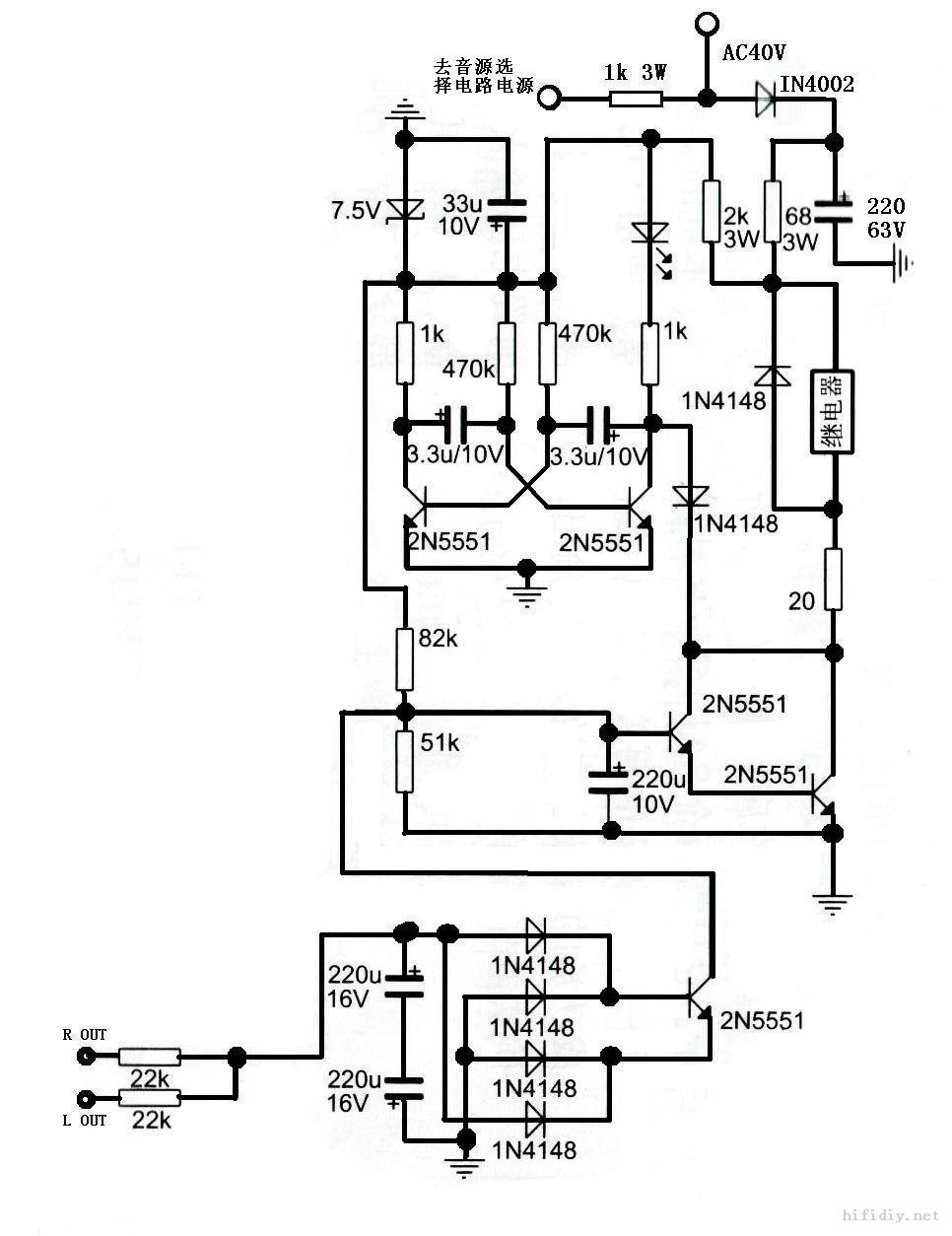 由于采用两个变压器,前级电路单独一个变压器,后级放大与音源选择、保护电路各组分开供电,相对比较复杂。但各电路的分离将给功放的性能带来优良的性能。
