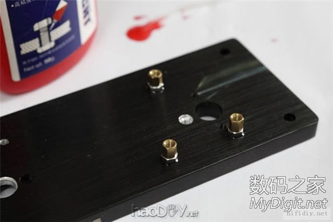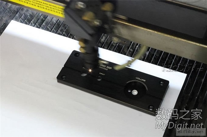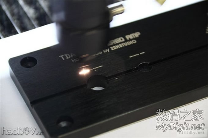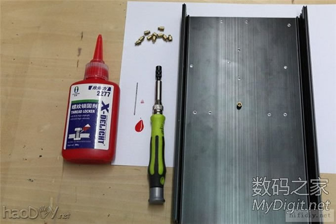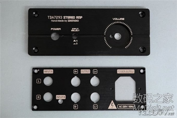 #p#分页标题#e#  原本的喇叭端子尾端的焊接用半圆口被我锯掉了,这才发现,原来所谓的纯铜端子其实是黄铜镀红铜。不知道正品CMC是不是也这样,不过,端子做工还不错,对得起价格。  这是喇叭端子和PCB的连接片,画好形状,用剪刀剪0.5mm铜片做出来的。当然,剪完铜片会卷曲,用锤子敲平,然后用锉刀修下边口毛刺,最后还是扔进蚀刻液里搞成沙金的。  最后焊接在PCB上,正极裸露较长的部分用热缩管做绝缘处理。  下面开始试装机了!用模型上设计的空位出CAD图,然后打印,贴在机箱底板上钻孔。我是先用锤子+丝锥,在孔正中心点个坑。然后用2mm钻头打孔,在用2.5mm钻头扩孔。  由于铝件比较软,拿手钻直接用2.5mm钻孔容易抖动造成孔径偏大,所以用M3丝锥攻丝。手工攻丝时,可以在孔内点一点点食用油帮助润滑。  机箱底板是2mm厚,能买到的六角铜柱螺丝,最短也有5mm。而由于机箱内部高度问题,又不能加垫片垫高。所以套上个螺母,差不多2mm,然后把多余的锯掉。断口用锉打平,把螺母退出来的时候可以当临时板牙,给受损变形的螺纹做修复。最后再稍微修下毛刺即可。  上PCB安装铜柱。多头组合改锥,这个东东我想喜欢折腾的都应该有一套吧~加了点螺纹紧固胶,防止拆装PCB时由于上面螺丝锁的太紧,松开时带动铜柱一起转。  上好铜柱,机箱底部很平整,手摸很光滑 第二次试装,看PCB与铜柱、喇叭端子与连接片之间是否能对齐。  PCB有个别孔稍微有点偏差,用小圆锉稍微修一下解决。安装螺丝用M3内六角,垫了电木垫片。电木片比较有弹性,可以锁的比较紧。   喇叭端子与连接片。上面两个正极端子用2mm的ABS塑料板做了两个垫片,这样上下两组的螺母就不在一个平面上了,方便在狭小的空间里把螺母上紧。  这是第一版设计的电源开关电路。(有的朋友会问为什么搞这么复杂?其实我也想简单,可惜为了放下更大的牛,把开关的位置给占了)第一版用的是一个线圈为AC230V的继电器,想直接用小开关来控制。后来还特意发帖向论坛求助是否有问题,得到了大家的很多帮助。   图左:给手动音源切换那一套用的,图右加了继电器控制开关,高压部分用高温胶带贴了一下。 面板安装孔。还是用设计图贴在上面,定位。钻孔时先钻个坑,然后把纸揭掉继续钻。面板是8mm厚,慢慢钻到6-7mm深,不能着急,一下钻透了就惨了。(如果有台钻就看刻度走,准确度高)  盲孔攻丝,最好用这种3只一套的。头头锥先攻出引导纹路,在用第三锥把最里面的螺纹攻出来。这样有效螺纹会更深。(一般不用二锥,直接用三锥。仔细看锥头的形状区别)  这回好,忘了买8mm铜柱,只好用螺母垫成7mm的,也还可以。上好紧固胶。  另一套的面板。多开了一个按钮的孔,而且还得把开关卧进去,就钻成这样了。(孔内壁没法发黑处理,就用黑马克笔涂一下,虽然颜色有点区别,但也还可以)  齿轮箱装好,转动的手感还不错。  前后面板的标识文字,在AI里进行设计。把面板上原来的丝印文字用稀料擦掉,然后进激光雕刻机雕刻画好的文件。  面板雕刻。(激光雕刻只适用于有色铝氧化表面,雕完是黄白色氧化铝的颜色,不太适合银色铝本色面板雕刻)  自编码,包括之前做的一台,这是第二和第三台。(其实这块手忙脚乱中雕错面了。)   其中一套完成品。  电位器延长杆没买现成的,因为一直觉得金属杆从牛旁边过会有感应。期间找了ABS棒,亚克力棒,都觉得它们在导热块后面穿过,烤时间长了容易变脆,而且两者的刚性差,转动会有扭动形变。最后找了根碳纤管,是鱼竿上的一节,刚性很好。然后请同事焊了两个黄铜连接件。   零件基本齐全了,开始最后的装配。 通电开声。用了个20W,双AC12V的小牛做测试,接上炮灰音箱,音源是电脑。这时的保护电路未通电,手动闭合继电器。(先放上音乐,然后轻点一下开关,通电时间0.X秒,如果电路没问题,喇叭就应该直接出声了,电容的余电还能让它再响几秒)确认各元件无异常后,就可以延长通电时间了。用这个小牛带着听了半天,导热块只是有点温,低电压的发热相当小。此时中点为0mV和0.1mV,电位器关到底无噪音无嗡声,断开输入电位器开到头有一丁点丝丝的热噪。  买这种继电器的好处就是带手动闭合开关。(主滤波的顶部离机箱盖只有3mm,而且新批次没绝缘帽,为了安全起见,用高温胶带贴了一下)  定制的四线AC26V+单AC16V的牛,150W。(功率偏小,但是这种机箱也放不下更大的牛了,除非分体)原带的线很长,果断剪短,然后压接插头。  每根线分成两股,热缩管分别套好,这是为了增大过流能力,也算冗余设计吧。
