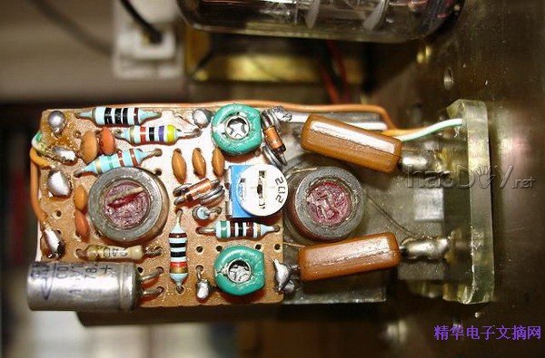 高频头正面,没有屏蔽罩,就用裸铜线给它绕了一个"栅极"