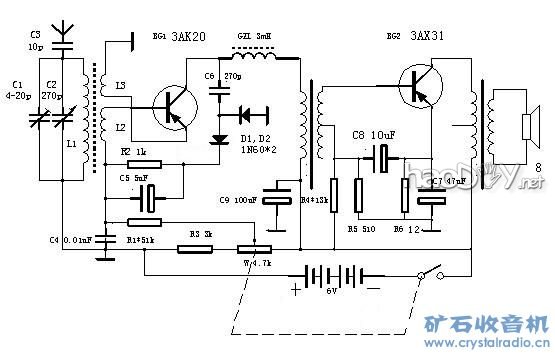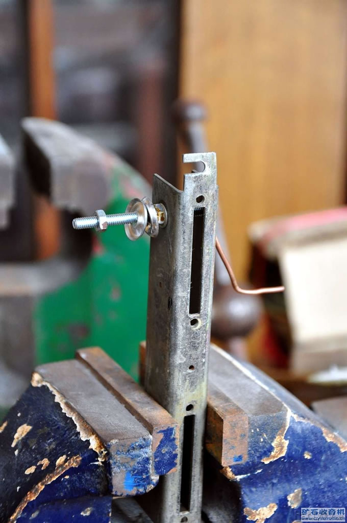 电路制作部分: 电路的程式很简单,一级来复再生检波,一级低放输出。电路是早期爱好者所乐用的简单电路,收听成绩也尚可,用少数的晶体管得到如此效果,乃是来复和再生电路的神效。 以前做过耳机输出的两管机,直观感觉就是音量比单管的大很多。这次是变压器交连,喇叭输出。本来预期能有可听的音量就满意,但这次试验下来的结果实在是出人意料,音量相当的宏大!试验过配合大喇叭,有蓬蓬声。 电路如图 电路程式是一级来复再生,一级低频输出。电路照搬了昔日先生的图,在此表示严重感谢。在制作时改动了了以下几个地方 1, 晶体管改为3AK20(蓝)和3AX31(紫) 2, 输出管的发射极电阻用了12欧姆。原来的图上写了51欧姆,怀疑原图是否有笔误,因为俺看了好几个电路,都木有用到那么大的。 3, 检波和倍压二极管改用1N60 输入输出变压器是自行绕制的,绕制数字参考了海棠TR2-1型两管机。 输入变压器: 用5×7铁心 初级3000T,次级713T 用线相同。铜线是从一个小变压器里面倒出来的 直径未知 应该是0.08的 输出变压器: 用6×8铁心 初级用Φ0.15的线600T,次级Φ0.31线116T 铁心交叉插 浸透绝缘漆并烘干 输入变压器花了一些心思,毕竟两管机的增益珍贵,每1dB都不能浪费。原来用的是黄河741的输入变压器,变比较小 只有2:1,结果声音小。试图改变接线以形成3:1的时候 发现居然有初次级间短路,于是这个变压器只好拆除重绕。发现的过程是:当时试验的时候,电流表接在来复级,遂忽视了输出的3AX31。结果发现喇叭里面的声音很小 偶然触碰到3AX31的时候发现热的烫手!赶紧断电。不过幸而管子未坏。经过这件事以后,检测发现初次级间电阻较小 只有8K左右,这是导致输出管险些烧毁的原因。重绕的时候拆线发现,原来的付边是双线并绕的 因此发生短路的机会较大。因为绕线机的轴是Φ10的,于是就自制了一个极简易的绕线机,用了一根M4螺栓和两对平垫+螺母,还有一些别的材料就搞定了。不过绕完3000+713圈的过程费了不少劲,木有加速的绕线机果然不好用,在过程中断线4次,只好接起来重绕,不过最后测量,好歹是没有发生短路,庆幸。现在的变压器有4.207:1,用在电路上效果尚好。 用的简单绕线机 ![]() 底板借用了一块旧的,原来似乎是用于低放以及推挽输出部分的,我利用了上面的铆钉,并自己另外打了几个以适应这个电路的使用。附图是底板图 (责任编辑:admin) |