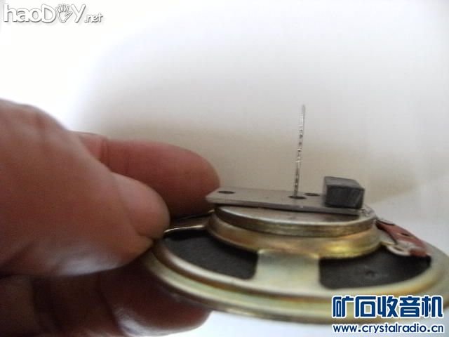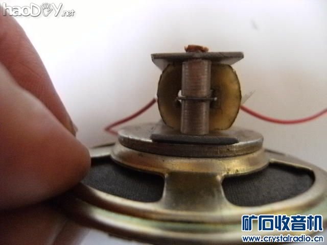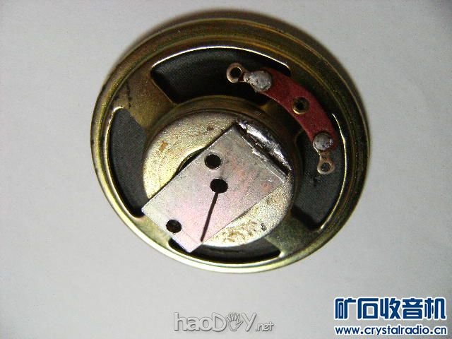 一、简化版的舌簧喇叭 1、线圈 使用DZ5开关过流线圈的骨架,用0.09毫米漆包线绕1000圈,直流电阻300欧。 2、导磁夹板和极靴 导磁板和极靴合二为一,使用1.2毫米的铁板弯制,在适当位置打4毫米的孔。 3、磁铁 使用微型吊扇拆的长方形磁铁三块。 4、舌簧 使用0.35毫米的矽钢片,在插入线圈的中部位置锉出两个小沟,用1毫米的漆包线 焊在小沟内,然后锉平,刚好插入线圈骨架。 5、纸盆支架 使用100毫米的动圈喇叭,将线圈、线圈支架拆除,将防尘盖反装,剪一个小铜片 焊一个比较硬的元件引脚线,用胶粘在纸盆上。 6、组装 图片未传完,明天继续。还有几只正在制作中,请版主预留几个空位,谢谢!