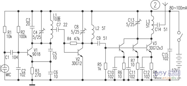 9018单管调频发射电路
