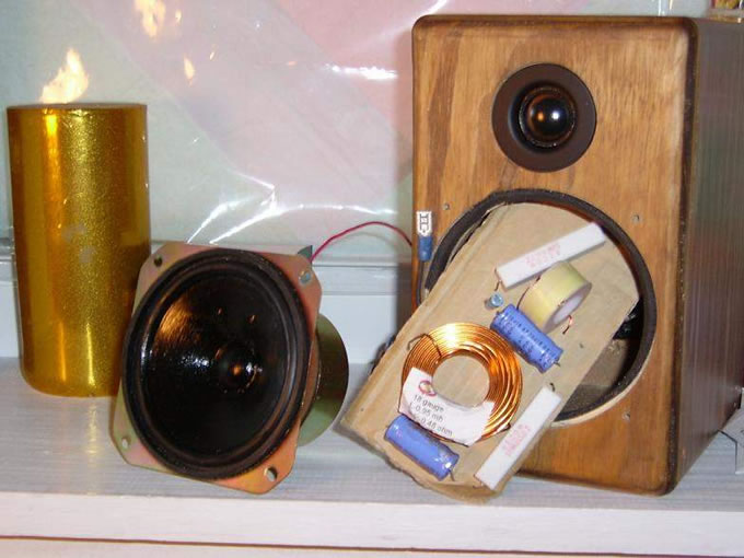 最近做了这一对小箱,当作多年没做箱的小练兵吧。前面板用夹板,其余用MDF+贴皮,不过上光油上的不好,gf说样子比我还丑,所以...献丑了,呵呵。接线还是全部鸡线,分频器用先进的纸板穿孔技术,大家不准笑偶~~ 来个内部照,高音是杂牌丝膜,低音是杂牌四寸涂纸盆, 分频全用无极电解,因为用mkp就要变成电容比单元贵了。都是多年没用的仓底货。 跟着说说设计过程。下面是高低音单元的实测阻抗和装箱后的单独频响图,用speakerworkshop测的。 上面是分频器的初步设计,因高音谐振约为1.6k, 初定分频点为3.8k. 因为高音比低音发声点靠前,所以设计低音的分频斜率比高音低,低音用二阶linkwitz-leily, 高音用三阶电分频/四阶声分频,上图分别为目标响应, 模拟高低音响应, 和反相位响应。因为高音用四阶,所以平常不用反接,反接时则会在分频点出现深谷,深谷则代表了高低音的同步性好。 下面的三条线是模拟的高音,低音和总频响图。上面的线是做好后的实测曲线,基本相差无几。 分频器的电路图。顺便一提,高音是6欧,低音是8欧。 完成后的左右声道阻抗图,可见分频元件和单元都有点离散性,但整体还可以。因为吸音棉一边放少了,造成Q值不一样,从谐振峰的高度可以看出来,还有待调整。开声的感觉是中高音不错,中频2.2k左右的小峰有一点冲,但幅度小问题不大。因为是四寸闭箱所以100hz以下基本没有了,准备和低音炮合用于电脑。 (责任编辑:admin) |