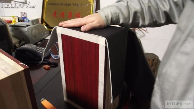 同时大家要注意的是,不要将怎个板子都上胶,必须要留一块侧板不开胶,等箱体内处理完后再开胶。切记。
