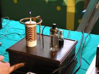 先上一张老照片,大家可以看到一个高音号筒及底下的盒子,盒子上头还装有一支真空管------整个系统便是一个高音单元,盒子中的是驱动线路,根本没有使用传统喇叭中的振膜结构,而使靠直接使空气等离子化来发声,频响范围覆盖高音的可听带域,上限可达250KHz! 照片为1951年一位叫做Siegfried Klein的在巴黎推出的等离子高音单元的产品,命名为“Ionophone”,据说它当时十分昂贵。这支高音单元的工作原理完全违背了所有现行主流高音喇叭的发声原理,首先它不具备任何机械振动结构,也就是说它没有振膜!其次是它借助于包含有一个电极的较小的石英管来构成其心脏部分(在以后的DIY过程中,我们可以用陶瓷来代替石英)。如果将此核心部件与工作在无线电频率的振荡器相连接并施以高电压的话,将使石英管内部的电极与空气间发生离子放电,从结果来看,这将直接导致离子化的空气压缩,并穿过狭窄的号筒喉口,最终转化为声波。此产品因其大胆及运用上的不成熟,在问世之初便横遭厄运,最后在美国暂时结束了其短命的一生,不过值得庆幸的是,后来在60年代,一位叫Faulkus的工程师对其进行了重新设计,并最终与1968年完成了商品化。 等离子高音的心脏部件原理图 等离子高音的心脏部件原理图。此部分相当于喇叭的振膜,亦即发声部。请各位不要以为很复杂,就如图所示,简单得很。此发声方式与文章开头的产品大同小异,差别的仅仅是驱动部分及有否号筒而已。离子放电与号筒没有直接关系,用不用号筒都无所谓,号筒的作用按我的看法,只是强制指向性而已,若装置制作无误,在电极尖端的离子放电即可产生很大的声压,而无需号筒进行辅助聚焦。 绝缘体并非一定要用棒状 绝缘体并非一定要用棒状,亦可使用陶瓷管(直径35mm),这样在耐压上更为可靠。各位在街上或小饰品店等若看到陶瓷的管状物而直径在35mm左右(将与主线圈的振荡指标相关)的,可尽管手到擒来。我打算使用的是用于摆设的上釉陶瓷小笔筒。 若有这种带孔的陶瓷管,则更是锦上添花。照片取自一位德国佬的制作。据我所知,因实用化及产品安全等种种原因,等离子扬声器在商业领域并无什么建树,有的话也将价格不菲,这只要看看屈指可数的几个静电扬声器生产厂家的状况便可略知一二。另一方面这也说明不了等离子扬声器的声音表现有何不妥,相反,它的声音却可使听过的人一生难忘(这一点以后再叙)。等离子扬声器真正大行其道的是在DIY界,但尽管如此,就我所能掌握得到的资料显示,全世界可能也只有不超过10个人的DIYER进行了制作,而其中只有屈指2、3个人用德文和丹麦文将制作的原始资料作了有限的公布。 工作中的状态。请注意电极前端的离子放电弧,电弧与电极尖端之间便是发声点,经过调制的音频信号中的高频成分在此等于被解调并直接转化为空气动能。-----那是怎样的一种声音?那是怎样一种不经过振膜的衰减及免除了振膜所带来的所有烦恼的声音?它的无指向性会给我们带来怎样的欣喜?它高超的高频延伸能力会轻易地给我们营造出一个空间感惊人的颠覆性的音场吗?它将给使用传统全频喇叭单元的人们在高频段带来何种奢华的享受? 等离子高音的工作原理其实与电感耦合高频等离子体发射光谱仪(ICP-AES)的工作原理类似,只是应用对象的不同及规格上的差异而已。因此可以这样理解:等离子高音的发声也就是电感耦合高频等离子体发射(ICP)的过程。 等离子体(Plasma)是指电子和离子浓度处于平衡状态的电离的气体。这种气体不仅含有中性原子和分子,而且含有大量的电子和离子,因而等离子体是电的良导体,因其正、负电荷密度几乎相等,故从整体来看是电中性的。采用高频振荡器及施以高压,可使流经线圈的空气电离产生火焰状的等离子体,称之为电感耦合高频等离子炬(Inductively Coupled Plasma torch),也就是照片中的火焰,简称 ICP 。 下图为一位不知名德国佬的制作,比较严谨,很漂亮。所用真空管为EL519。注意,这是电源开启的瞬间。 对于前文中所介绍的Ionophone,这里有几张十分珍贵的资料的扫描,可供参考。当然,其中的线路图可以给我们一个大概的思路,但我认为由于年代久远,已经不值得我们照搬。但对于结构方面,比如如何给整个高音单元加装号筒,却对我们不无陴益。 我们可以从上面的图片中闻到一股褪色了的早年技术的残留气息。对于此项发明,德国人即使在近代仍将它作了十足的改进,这里有几张德国某小公司的产品照片。由于技术保密之故,我们除了这些照片之外,对其内部的线路部分一无所知,仅可从照片上得知,所用真空管大致为EL509/519或PL509/519之类。 (责任编辑:admin) |