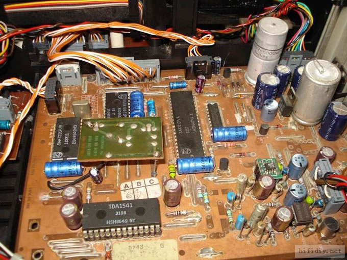 4,飞利浦电源滤波部分,更换了些电容。首先是1000UF的,原本的是尼康电容。尼康的电容声音给我的印象是比较直白的,没有太多味精,这个老电容我尝试换了个RIFA 2200UF,声音马上感觉通透很多,细腻很多,口水声立现。声音的速度有所改善。听了两天,尝试换成飞利浦BC卧式的4700UF,听不到一曲,个人还是喜欢RIFA上面的感觉。高频细腻,通透,中频不会减,低频速度好,下潜深。最起码不是原本的那种雾气很重的声音,听起来像感冒。旁边的150UF,换了220UF,试试看,声音有点拖,赶紧换回。值得一提的是,在电源滤波旁边有4个47UF的小尼康电容,我换成了飞利浦蓝壳的47UF,声音的确有改善,尤其是甜味。比之前的小尼康好多了。这个我没有必要吹水,自己试试就知道。