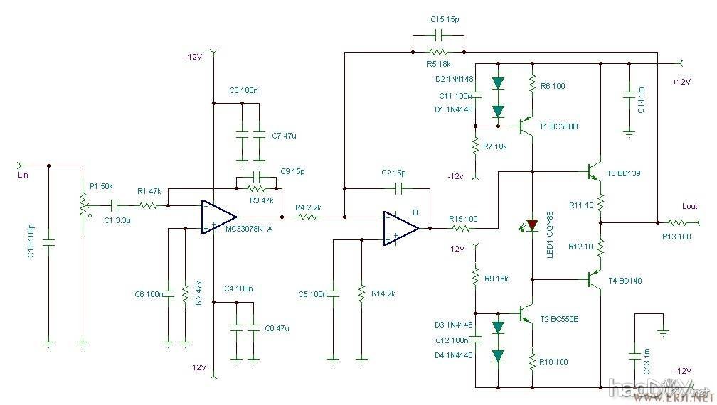 首先来张电路图, 运放opa2132p耳放,耳机放大器,运放耳放,opa2132,...