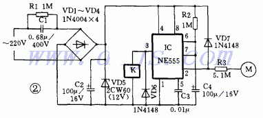 图2是耽误开关电路,555集成块接成单稳态触发器,平常处于复位状态,继电器K不举措。当M受到触摸时,电路被触发进人暂态,③脚输出高电平,继电器K吸合,被控电器事变。暂态时刻t=1.1R2 X C4,暂态时刻竣事,电路翻转成稳态,继电器K开释,被控电器遏制事变。