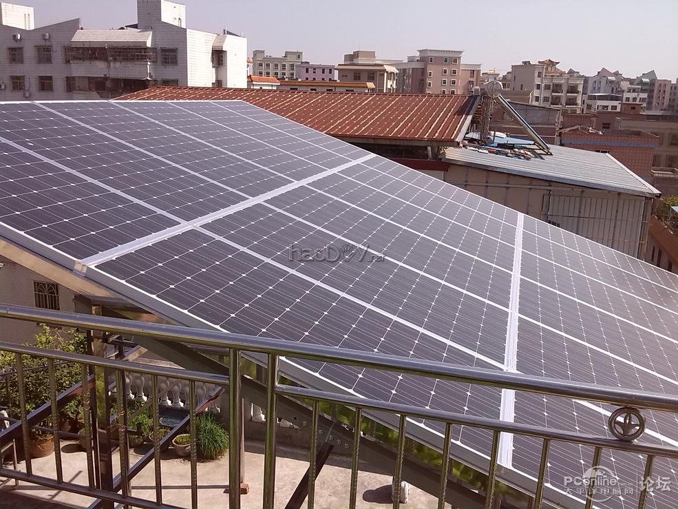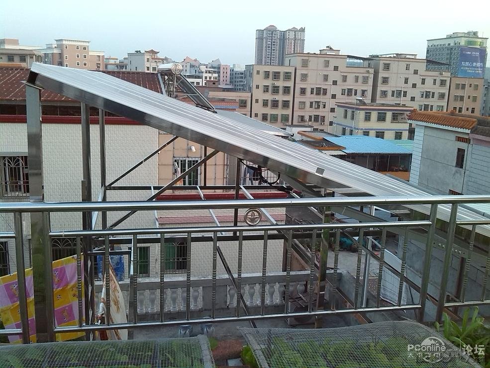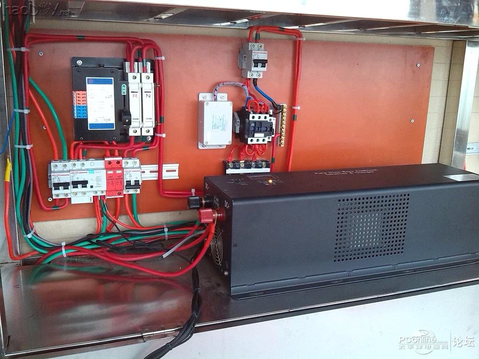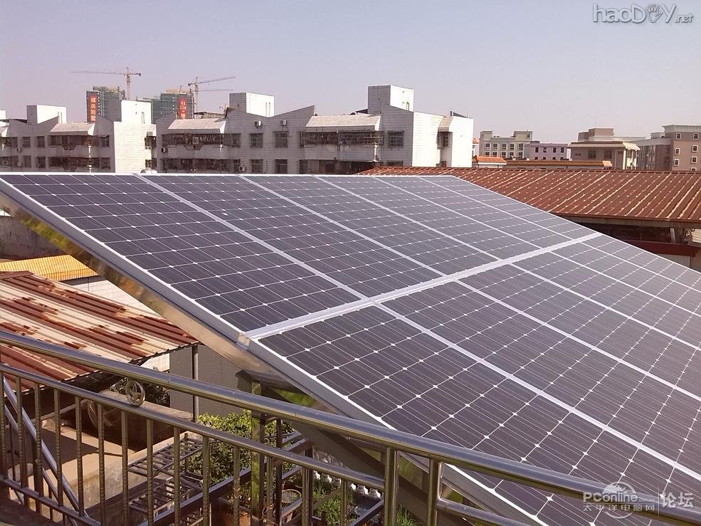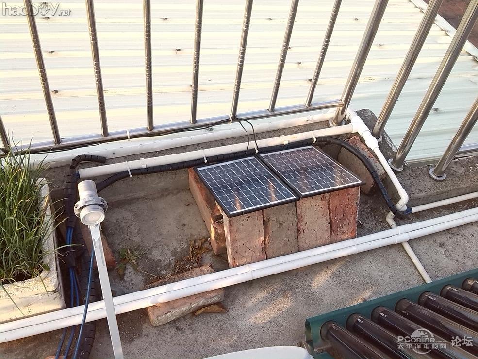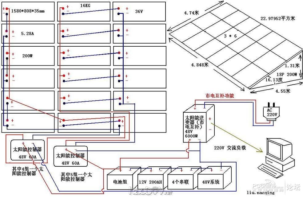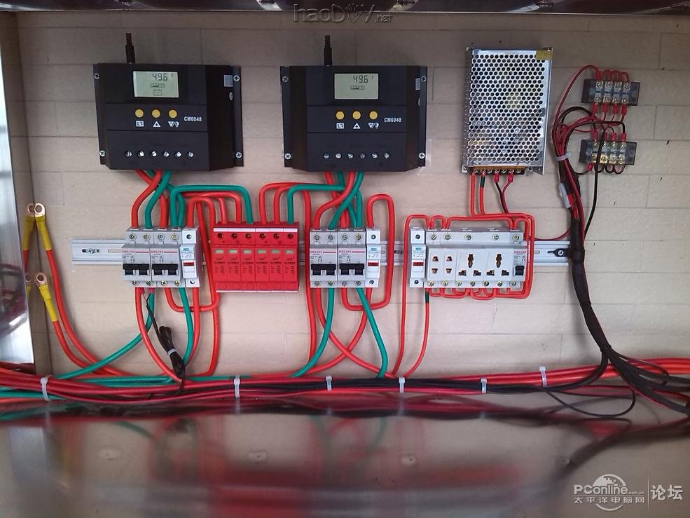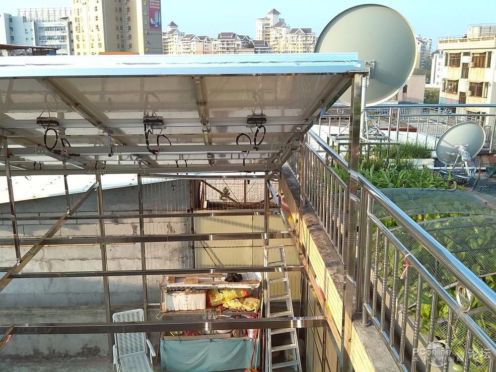 图 经过了天兔台风的肆掠,体会到台风的威力;跟制作太阳能板支架的师傅强调要用好的材料,可以抵御12级台风的级别才行,所以不锈钢材都是用加厚的需要订货才行。 ![]() 整体图,一共是18块200W的单晶硅太阳能电池板,每个板子可以独立拆卸,方便以后维护。 ![]() 安装之前需要先试好每块板子的螺丝位是否正确,螺丝也是不锈钢的,一劳永逸,不用考虑生锈问题。 ![]() 做好的支架整体图,待会需要四个人才可以抬起来,非常重 ![]() 不锈钢支柱底座,也是不锈钢的,开孔非常困难,一共六条支柱。 ![]() 这个是机柜,一共三层,最上面一层放置逆变主机和太阳能控制器,断路器等开关设备,第二、三层是电池位置,可以放置8个12V 200AH电池 ![]() 12V 200AH太阳能专用深循环电池,非常重,搬到6楼,手都快断了 ![]() ![]() 预留好开孔位,需要考虑仪表,布线,开关按钮,风扇等 ![]() 完工效果图 ![]() ![]() ![]() ![]() ![]() 机柜上有输出交流电压,输出交流电流,蓄电池电压,机柜温度,以及对应的按钮,风扇开关,室外LED光管开关等,还有两个预留开关。 ![]() 18块太阳能电池板分为两组,一组2串4并,另外一组2串5并,分别接60A太阳能控制器;以下这个是自己DIY的汇接箱,可以实时直观的看到目前太阳能发电情况,红色的是电压,蓝色的是电流,红色电压在带负载的情况下可以达到55左右,空载的时候最高可以达到90左右(11月日照)蓝色电流最高的一组可以达到23A左右(10块板子) ![]() ![]() ![]() ![]() 机柜内部情况,黑色的是6000W逆变主机(直流主供型,可以充分利用太阳能发电,蓄电池没有电的情况下会直接切换到市电,待蓄电池充满又自动切换回逆变供电,切换时候不会有任何感觉,无缝切换),蓝色那个是双电源自动切换开关,如果关闭逆变主机则会自动切换到市电,这个切换是有时延的,大概1秒左右,断电有感觉。其它的就是断路器和漏电保护开关。 #p#分页标题#e#![]() ![]() ![]() 2个60A的太阳能控制器,具有很详尽的实时数据查看功能,可以了解当前电池电量,温度,充电电流,电池电压,发电安时数,用电安时数非常好用。有个8A的开关电源,主要用来提供仪表,机箱风扇,室外LED光管12V直流供电用。几个两相和三相插座是测试用。 ![]() ![]() 每一层都有一个散热风扇,目前温度可以控制在30度以内 ![]() ![]() 双电源切换开关 ![]() ![]() ![]() ![]() ![]() ![]() ![]() ![]() 全景图,中间太阳能电池板之间的接缝考虑到漏水问题,使用了铝箔纤维胶布,可以防晒,防水,而且不容易撕烂,粘性很强。 ![]() ![]() 最下面有水槽,雨天接水可以用来浇菜淋花。 ![]() 整体结构,比较牢固,应该可以抗击台风。 ![]() ![]() ![]() ![]() ![]() ![]() #p#分页标题#e#![]() ![]() ![]() ![]() ![]() ![]() 每块板子都使用MC4专用接口相连,维护便易,走线使用铁线槽较为耐用,线槽下有四条防水LED光管,晚上非常亮。 ![]() ![]() ![]() ![]() 让师傅做了一个梯子,方便攀爬维护 ![]() 一段时间后太阳能电池板表面会积聚灰尘,从而使发电效率受到影响,需要定期对板子进行清理。以下是太阳能板子的清理利器(洗车用,带水枪) ![]() ![]() 清洁后的板子焕然一新(最好选择太阳快下山的时候清理,这时候板子已经凉下来,而且已经不在发电状态) ![]() 抛砖引玉的两块小板子,太阳能应急灯用,很方便,用它做过太阳能仰角测试 ![]() ![]() ![]() 太阳能热水器,用了几年了,就是从它开始发现太阳能的好处。 ![]() 这是卫星天线,另外一个爱好 ![]() ![]() 避雷器的安装 直流避雷器,每路电池板接一个(最好安装在保险丝和断路器后面),地线接机柜即可(要求是接最近的钢架结构) ![]() ![]() 交流避雷器(图中黄色热缩管包着的就是地线,还没有找师傅焊好接口,只是简单的靠在钢架上)#p#分页标题#e# ![]() ![]() 太阳能直流电表改太阳能电池供电(直流电流表需要至少DC 4V以上电压供电最多28V,所以不能使用48V的太阳能电池供电只能另外搞两块小板子专门供电。使用开关电源供电晚上没有任何电流经过也是浪费,最重要的是两个直流电流表使用一路开关电源供电容易烧毁,必须分两路电流供电才能稳定。) ![]() 太阳能电池板只有巴掌大小 ,很可爱(外形尺寸:130×190×15MM 输出电压/电流:9V、260MA 功率:2W-2.3W) ![]() 专门做了一个不锈钢支架支撑两块小板,DIY夹具固定在扶手上 ![]() ![]() ![]() 安装无线视频监控摄像头以及网络摄像头,实现电视、手持2.4G无线视频接收设备以及电脑、手机远程实时监控太阳能发电情况。 2.4G无线影音传输设备,可以连接电视收看。 ![]() 手持2.4G无线影音接收设备,无需开电视,快捷方便。 ![]() 海康威视C2网络摄像头,支持WIFI,可以实现在电脑手机远程查看。 ![]() 用铝合金材料DIY的摄像头支架 ![]() ![]() 摄像头支架直接固定在机柜上,需要打开柜子的时候可以将支架向后拨。 ![]() ![]() ![]() ![]() 可以在电脑上远程查看发电情况,也可以安装专用软件在手机上看,无需购买网络域名,配置很简单。 ![]() 更换PC级双电源自动切换开关和安装远程遥控断路器 二级遥控断路器(带配电箱)考虑到系统整合和美观最后决定只使用内里配件安装 ![]() 白色的两个是3000米超远距离双键遥控器,实际测试一楼遥控六楼不锈钢机柜内断路器无压力 ![]() PC级双电源自动切换开关,切换时间小于80MS,不会造成日常电器断电(实测LED灯会闪一下,但是电视、洗衣机、冰箱等日常家用电器不会断电)。 #p#分页标题#e#将PC级ATS开关和遥控断路器