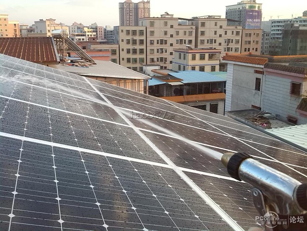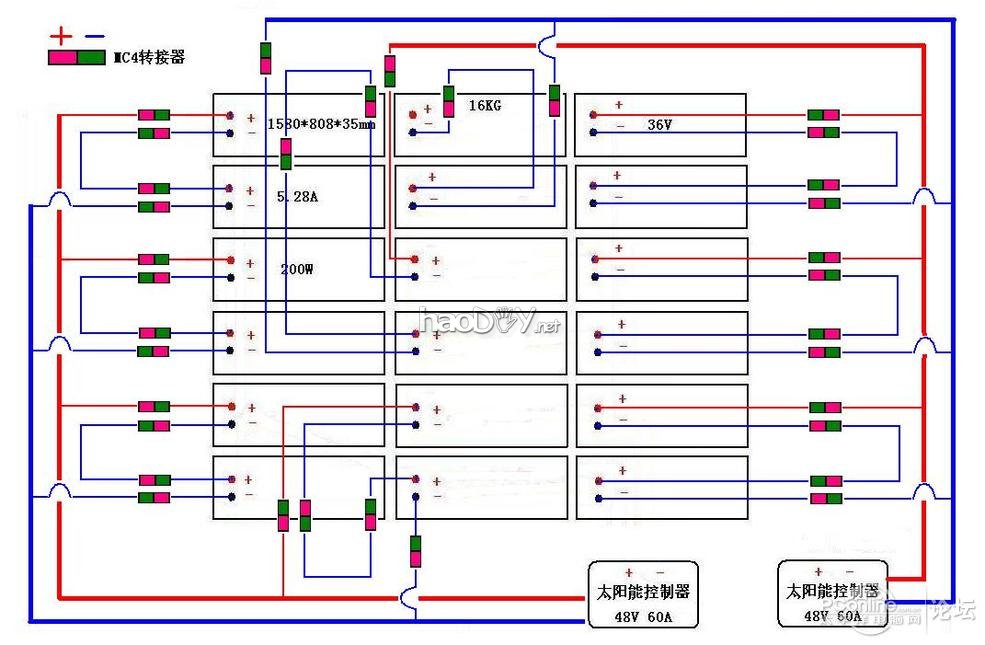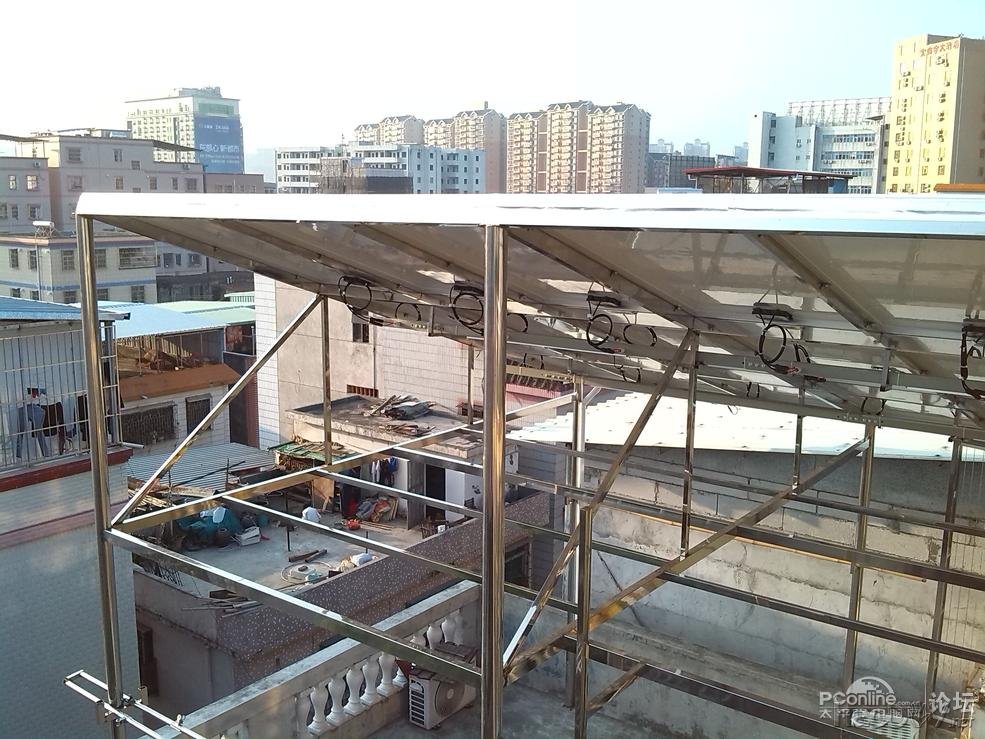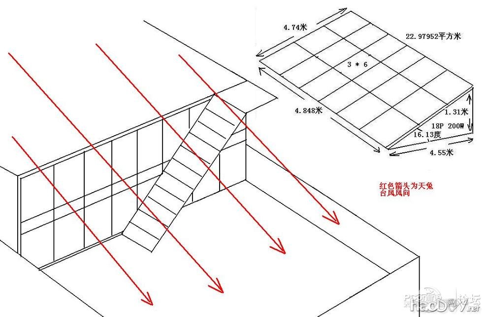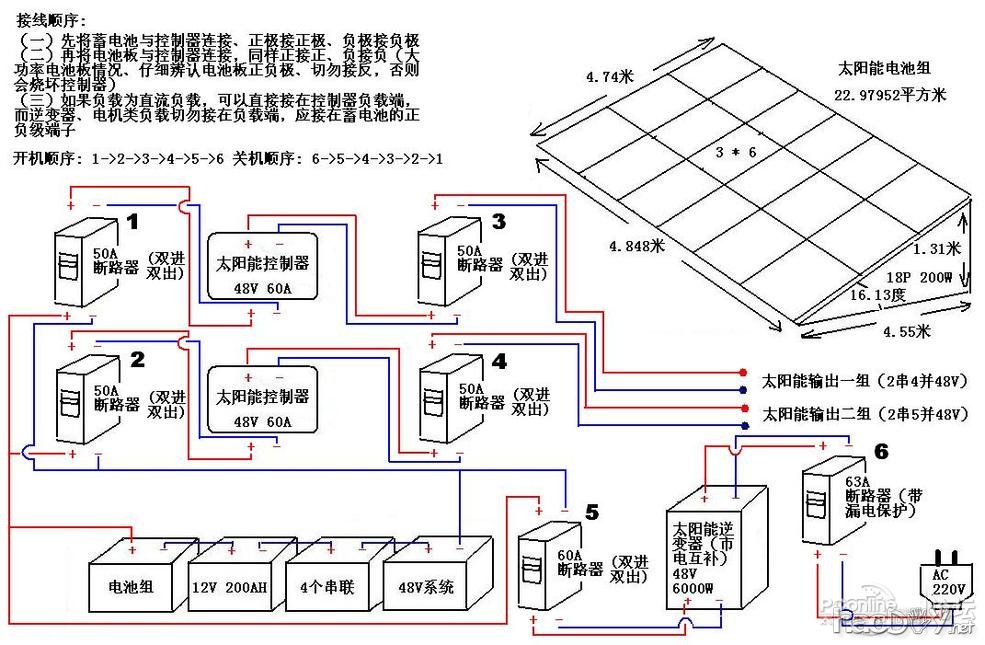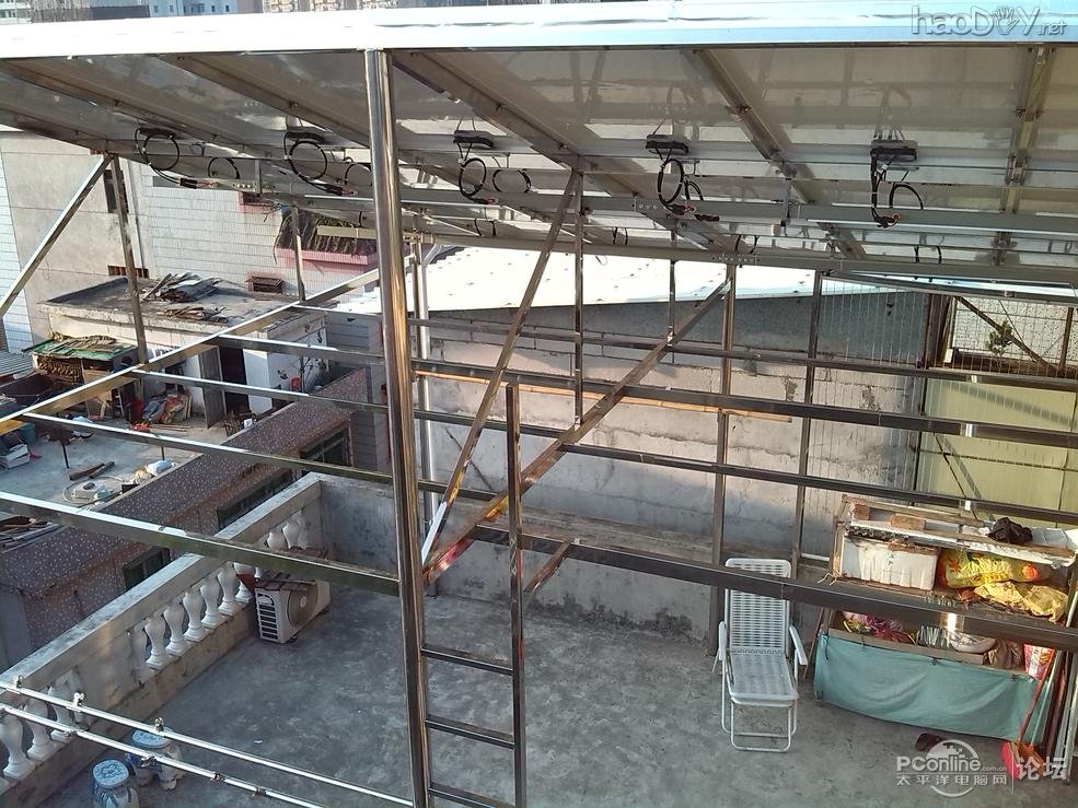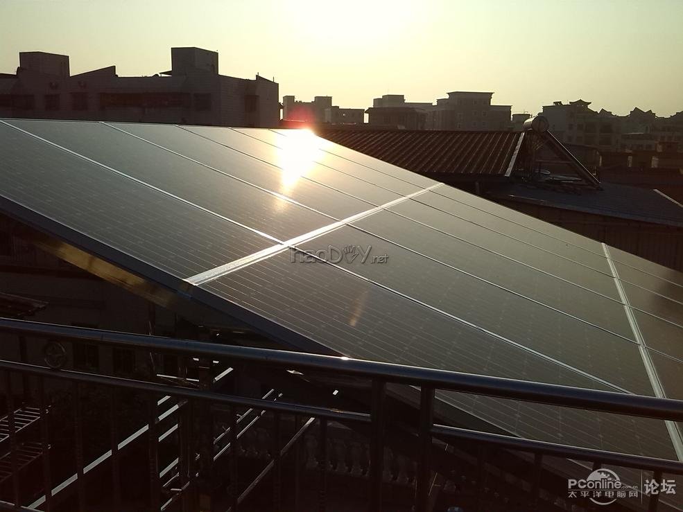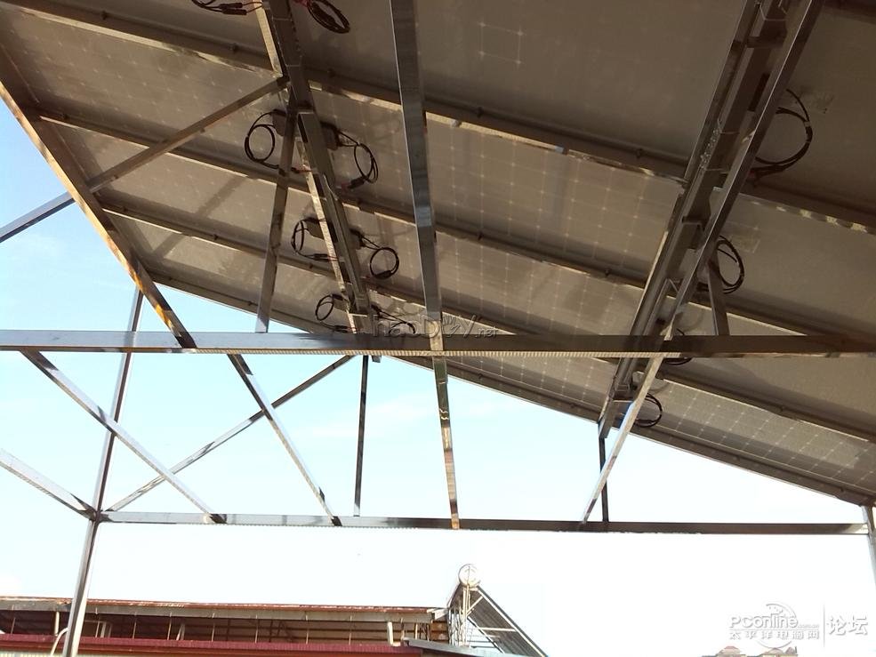 图 经过了天兔台风的肆掠,体会到台风的威力;跟制作太阳能板支架的师傅强调要用好的材料,可以抵御12级台风的级别才行,所以不锈钢材都是用加厚的需要订货才行。 ![]() 整体图,一共是18块200W的单晶硅太阳能电池板,每个板子可以独立拆卸,方便以后维护。 ![]() 安装之前需要先试好每块板子的螺丝位是否正确,螺丝也是不锈钢的,一劳永逸,不用考虑生锈问题。 ![]() 做好的支架整体图,待会需要四个人才可以抬起来,非常重 ![]() 不锈钢支柱底座,也是不锈钢的,开孔非常困难,一共六条支柱。 ![]() 这个是机柜,一共三层,最上面一层放置逆变主机和太阳能控制器,断路器等开关设备,第二、三层是电池位置,可以放置8个12V 200AH电池 ![]() 12V 200AH太阳能专用深循环电池,非常重,搬到6楼,手都快断了 ![]() ![]() 预留好开孔位,需要考虑仪表,布线,开关按钮,风扇等 ![]() 完工效果图 ![]() ![]() ![]() ![]() ![]() 机柜上有输出交流电压,输出交流电流,蓄电池电压,机柜温度,以及对应的按钮,风扇开关,室外LED光管开关等,还有两个预留开关。 ![]() 18块太阳能电池板分为两组,一组2串4并,另外一组2串5并,分别接60A太阳能控制器;以下这个是自己DIY的汇接箱,可以实时直观的看到目前太阳能发电情况,红色的是电压,蓝色的是电流,红色电压在带负载的情况下可以达到55左右,空载的时候最高可以达到90左右(11月日照)蓝色电流最高的一组可以达到23A左右(10块板子) ![]() ![]() ![]() ![]() 机柜内部情况,黑色的是6000W逆变主机(直流主供型,可以充分利用太阳能发电,蓄电池没有电的情况下会直接切换到市电,待蓄电池充满又自动切换回逆变供电,切换时候不会有任何感觉,无缝切换),蓝色那个是双电源自动切换开关,如果关闭逆变主机则会自动切换到市电,这个切换是有时延的,大概1秒左右,断电有感觉。其它的就是断路器和漏电保护开关。 #p#分页标题#e#![]() ![]() ![]() 2个60A的太阳能控制器,具有很详尽的实时数据查看功能,可以了解当前电池电量,温度,充电电流,电池电压,发电安时数,用电安时数非常好用。有个8A的开关电源,主要用来提供仪表,机箱风扇,室外LED光管12V直流供电用。几个两相和三相插座是测试用。 ![]() ![]() 每一层都有一个散热风扇,目前温度可以控制在30度以内 ![]() ![]() 双电源切换开关 ![]() ![]() ![]() ![]() ![]() ![]() ![]() ![]() 全景图,中间太阳能电池板之间的接缝考虑到漏水问题,使用了铝箔纤维胶布,可以防晒,防水,而且不容易撕烂,粘性很强。 ![]() ![]() 最下面有水槽,雨天接水可以用来浇菜淋花。 ![]() 整体结构,比较牢固,应该可以抗击台风。 ![]() ![]() ![]() ![]() ![]() ![]() #p#分页标题#e#![]() ![]() ![]() ![]() ![]() ![]() 每块板子都使用MC4专用接口相连,维护便易,走线使用铁线槽较为耐用,线槽下有四条防水LED光管,晚上非常亮。 ![]() ![]() ![]() ![]() 让师傅做了一个梯子,方便攀爬维护 ![]() 一段时间后太阳能电池板表面会积聚灰尘,从而使发电效率受到影响,需要定期对板子进行清理。以下是太阳能板子的清理利器(洗车用,带水枪) ![]() ![]() 清洁后的板子焕然一新(最好选择太阳快下山的时候清理,这时候板子已经凉下来,而且已经不在发电状态) ![]() 抛砖引玉的两块小板子,太阳能应急灯用,很方便,用它做过太阳能仰角测试 ![]() ![]() ![]() 太阳能热水器,用了几年了,就是从它开始发现太阳能的好处。 ![]() 这是卫星天线,另外一个爱好 ![]() ![]() 避雷器的安装 直流避雷器,每路电池板接一个(最好安装在保险丝和断路器后面),地线接机柜即可(要求是接最近的钢架结构) ![]() ![]() 交流避雷器(图中黄色热缩管包着的就是地线,还没有找师傅焊好接口,只是简单的靠在钢架上)#p#分页标题#e# ![]() ![]() 太阳能直流电表改太阳能电池供电(直流电流表需要至少DC 4V以上电压供电最多28V,所以不能使用48V的太阳能电池供电只能另外搞两块小板子专门供电。使用开关电源供电晚上没有任何电流经过也是浪费,最重要的是两个直流电流表使用一路开关电源供电容易烧毁,必须分两路电流供电才能稳定。) ![]() 太阳能电池板只有巴掌大小 ,很可爱(外形尺寸:130×190×15MM 输出电压/电流:9V、260MA 功率:2W-2.3W) ![]() 专门做了一个不锈钢支架支撑两块小板,DIY夹具固定在扶手上 ![]() ![]() ![]() 安装无线视频监控摄像头以及网络摄像头,实现电视、手持2.4G无线视频接收设备以及电脑、手机远程实时监控太阳能发电情况。 2.4G无线影音传输设备,可以连接电视收看。 ![]() 手持2.4G无线影音接收设备,无需开电视,快捷方便。 ![]() 海康威视C2网络摄像头,支持WIFI,可以实现在电脑手机远程查看。 ![]() 用铝合金材料DIY的摄像头支架 ![]() ![]() 摄像头支架直接固定在机柜上,需要打开柜子的时候可以将支架向后拨。 ![]() ![]() ![]() ![]() 可以在电脑上远程查看发电情况,也可以安装专用软件在手机上看,无需购买网络域名,配置很简单。 ![]() 更换PC级双电源自动切换开关和安装远程遥控断路器 二级遥控断路器(带配电箱)考虑到系统整合和美观最后决定只使用内里配件安装 ![]() 白色的两个是3000米超远距离双键遥控器,实际测试一楼遥控六楼不锈钢机柜内断路器无压力 ![]() PC级双电源自动切换开关,切换时间小于80MS,不会造成日常电器断电(实测LED灯会闪一下,但是电视、洗衣机、冰箱等日常家用电器不会断电)。 #p#分页标题#e#将PC级ATS开关和遥控断路器