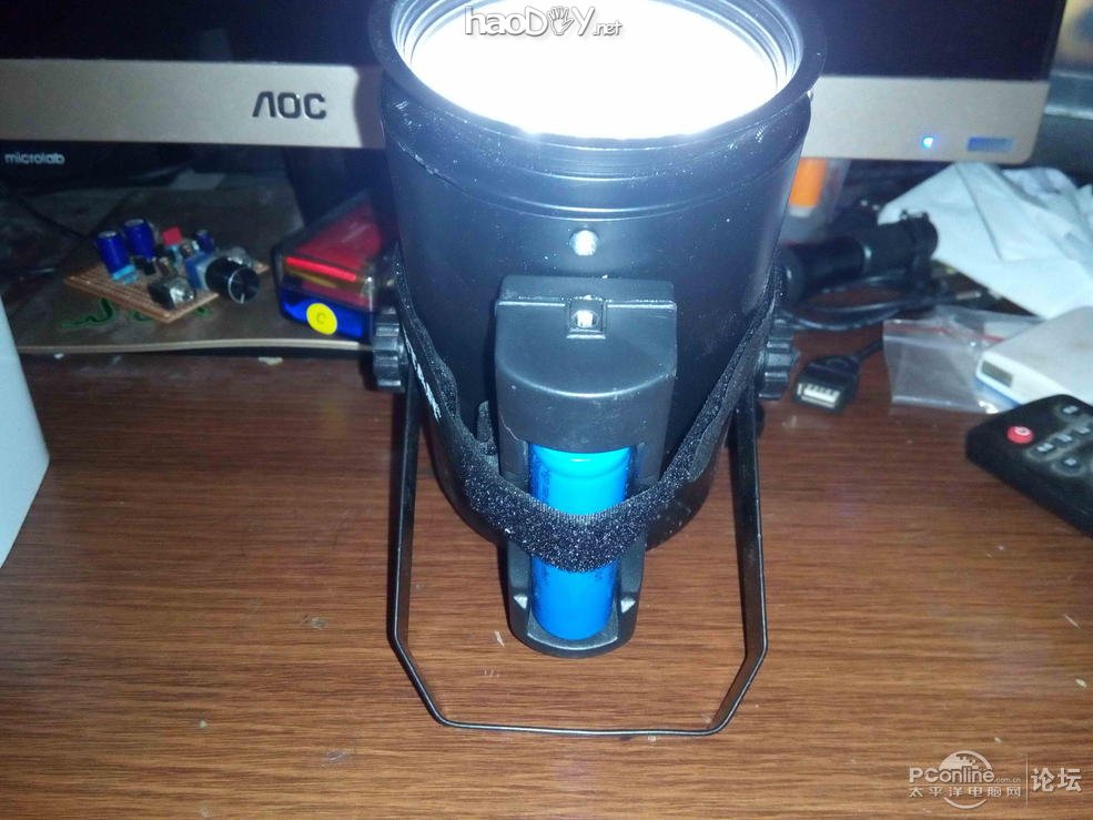 家里坏射灯一只 本来想做一个工作射灯的 做着做着就成了便携式射灯了 成本 2596调压模块 2.4¥ (没有2596模块的用LM317也行 连电感都不用) 5K电位器 0.5¥ 电池外加电池盒是买手电筒送的 算作10¥吧 坏射灯一只这个说实话对于这东西本身来说没有价值了 但是7W灯芯没烧 算作5¥ 合计20¥不到 就能拥有一个待机1-3小时的便携射灯 (无极亮度调整) 大家可以参考一下做个用 下面大概说一下 ![]() 这种射灯拆解 就只用拆掉后面的一颗螺丝 ![]() ![]() 然后改灯头走线 原装的是串联的 不能用3.7V驱动的 覆铜全部切开 (用电摩1分钟就解决了,没电摩的用雕刻刀慢慢划吧) ![]() 这走线不要喷 全裸线 不要用带外皮的 不然时间长了会融化 裸线上锡之后是非常扎实的 不怕变形 ![]() 一个2596模块一个5K或者 10K电位器 ![]() 下面走线没什么好说的 怎么拆的线怎么装 ![]() ![]() 有些人喜欢长风胶 我个人还是喜欢螺丝 扎实点 ![]() ![]() ![]() 然后组装就行了 不少洞洞还是要改改的 不然电位器放不了 魔术绑带是为了防止电池掉下来 ![]() #p#分页标题#e# ![]() ![]() ![]() ![]() ![]() ![]()