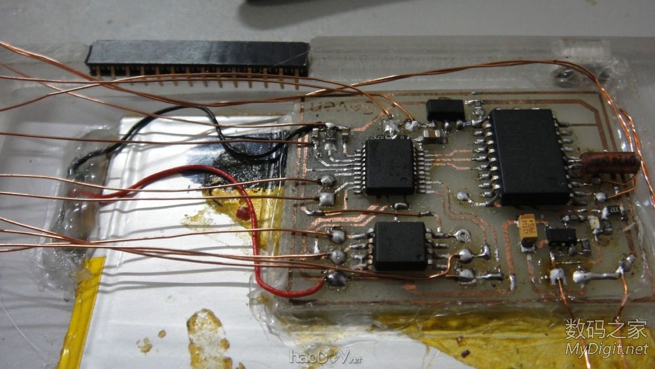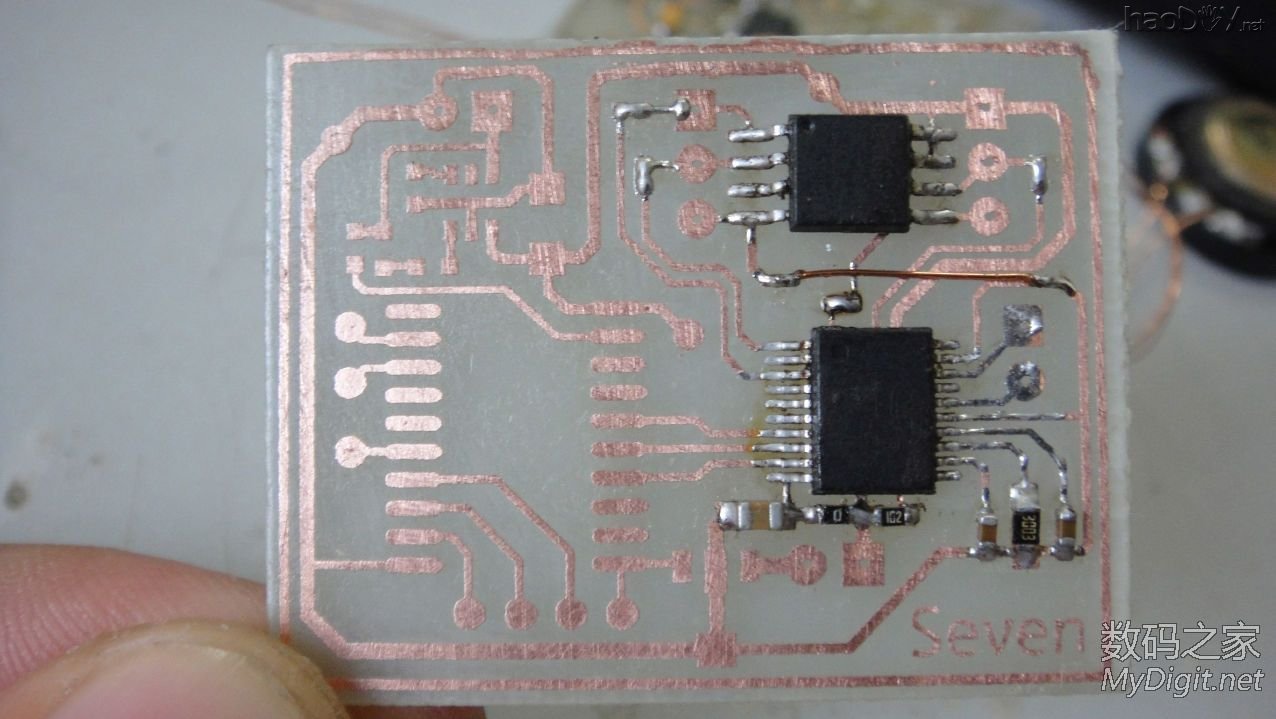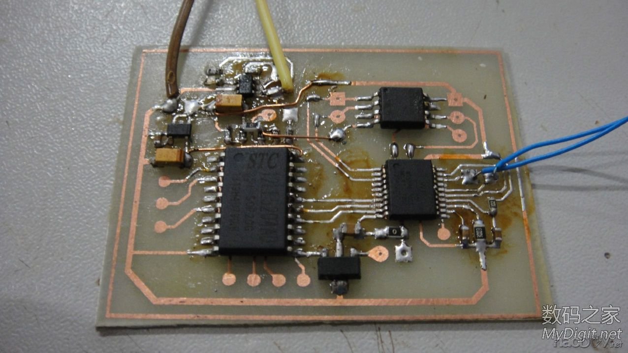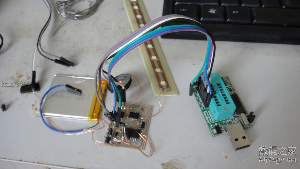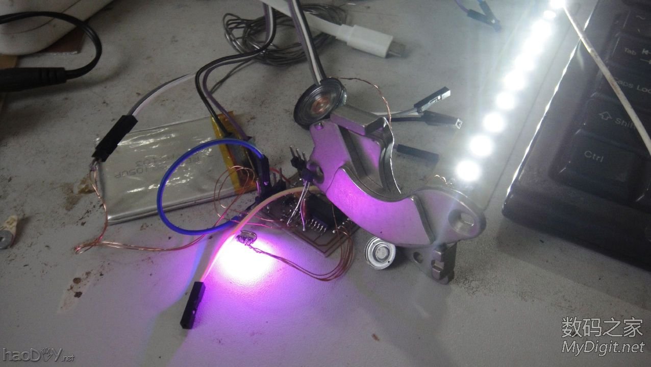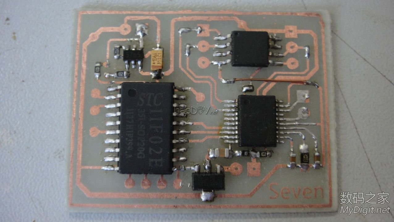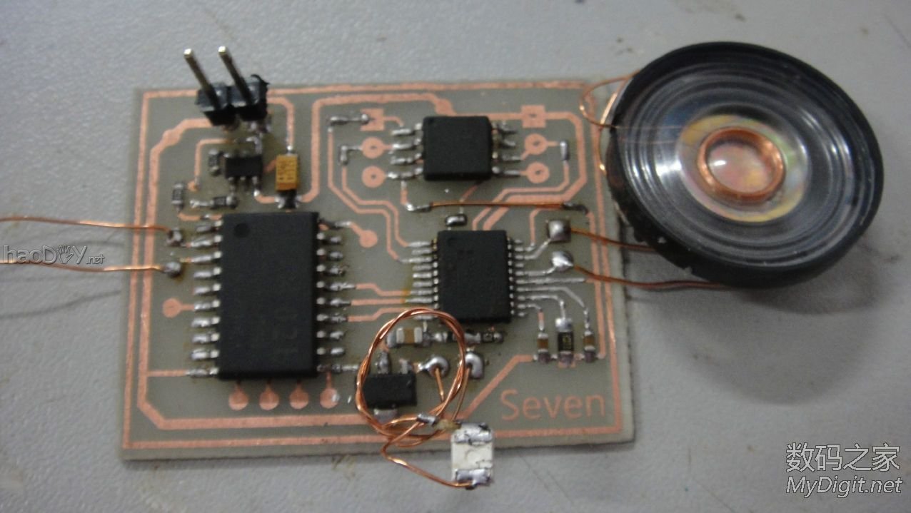 【前 言】 上个学期,小七的女朋友不知道从哪搞来的一个莫名其妙的想法,让我帮她做一个【会说话的小台灯】,不然就有我好看。。。o(╯□╰)o。。。在女朋友我威胁加利诱下,不对,呸,只有威胁,哪有利诱!在女朋友的威胁之下,我只好含着屈辱的眼泪,被迫答应了。 事情比较多,断断续续做了差不多一个学期,也没做好,趁着现在放假,把它完成了,期间有些照片不见了,大家凑合着看吧。 【正 文】 一开始倒没怎么规划,记得以前拆过一个LCD显示器,里面的背光板我还保存着,干脆拿来做台灯的外壳算了。于是,先上 Solidworks 来画结构图。 新建一个部件 ![]() 画一个圆角矩形,作为底座 ![]() 拉伸成立方体 ![]() 在上面刻上字,小麻雀。。。我对我女朋友的称呼 ![]() ![]() ![]() 在中间挖空一个心形,这个心形有什么用呢?先不告诉你~ ![]() ![]() ![]() 再新建一个部件,画出一个心形 ,和上面挖空的大小差不多一致 ![]() ![]() 在心形的中间挖一个小圆槽 ![]() 再新建一个部件,作为台灯支架 ![]() 再新建一个。。。 ![]() 然后把所有零件拼装起来,形成台灯的样子。 ![]() 渲染的效果,不会弄,很难看的,哈哈 ![]() 讲到电路板了,那咱继续。。。 接着,就是苦逼的写程序了,从8月1号开始写,刚开始是用STC15系列8个引脚的单片机,结果调试的时候老出现问题,中断进不去,LED点不亮,电路板也检查了好几次,也找不到原因,一恼火就换成STC11F02E了,于是又重新画板,拆下来,焊接。。。写程序,调试,写程序,调试。。。 ![]() 【 语 音 篇 】 先在记事本上写上10段开灯时播放的语音,10段低电压时需要充电的提示语音,以及10段检测到充电时播放的语音,10段关灯时播放的语音 ![]() 接着打开 Adobe Audition ,然后把他们都录起来,录完一句停顿一下,方便后期处理。#p#分页标题#e# ![]() 用 Adobe Audition 把刚刚录好的语音一段一段的选中,并导出成12000Hz,16位深度的WAV,这样WAV的体积和清晰度都能得到保证,而且语音的话用小喇叭放出来都差不多 ![]() 打开 WT588D 的上位机,把所有的语音都拖进来,WT588D 最多支持 200多段语音,具体忘记了,我是这样设置的,开灯的10段语音放在 0x00 ~ 0x09 的地址里,0x0A~0x0F 先不用,如果以后想扩展了还有位置,需要充电的提示音放在0x10~0x19,充电检测提示音放在0x20~0x29,关灯的提示音放在0x30~0x39,然后在设置里把 WT588D 设置成三线串口控制模式 ![]() 设置好后编译成BIN文件,下载到外置 SPI FLASH 里面,这里有个小插曲,因为没用过WT588D,不知道这个BIN文件是通过编程器直接烧写进FLASH,还是先下载到WT588D里,WT588D再把它处理,存进FLASH里面,于是去问厂家客服,尼玛,他说要用他们的编程器才能下载,一个编程器要200,我靠!当时我就不乐意了,淘宝才卖30,怎么到你这里就变成200了,坑人吗?然后就研究淘宝上的WT588D编程器,发现接线跟编程器烧写FLASH差不多,只是多了根RST线,根据WT588D的数据手册,知道这个是用来复位用的,结合他们宣传的,可在线把语音烧写进FLASH,我猜应该是烧写时,一直给WT588D的RST端复位,等编程器把BIN烧写进FLASH后再恢复,经过试验,的确是这样,哇咔咔,又省了30快+10块邮费 用普通的SPI FLASH 编程器就可以,这个是当初刷路由时买的,现在派上用场了,把编程器和FLASH连接起来,然后把ET588D 的 RST端接地,打开编程器软件,加载编译好的BIN文件,烧写进去就OK了。 ![]() 【 综 合 调 试 】 把所有外设接起来,进行调试,其中包括 LED照明灯,RGB 状态灯,以及小喇叭,霍尔开关(用来开关台灯用的),台灯的功能是这样的: 【1】将心形的那个钥匙放入台灯的心形缺口后就会开灯,喇叭随机播放一段开机语音,接着LED照明灯从0渐渐增加到180(0-255级的亮度,没做LED的亮度补偿,因为51单片机的速度不够),照明灯亮起后,RGB状态灯也从0开始亮到180,然后RGB状态灯开始七彩呼吸灯,从红色缓缓亮起-(黄色过渡)-绿色-(天蓝色过渡)-蓝色-(紫色过渡)-熄灭,就跟七彩LED差不多的那种。 【2】如果按下调光按钮,则LED照明灯的亮度会变亮,最亮后又会变到最暗,接着又变到最亮,直到按钮松开。 【3】当电压低于3.5V时,单片机会检测到并产生中断,这时候就随机播放需要充电的语音,每隔5分钟提醒一次,如果此时插入 Micro USB 充电,则单片机也会检测到,并随机播放一段正在充电的语音。 【4】如果把心形钥匙拿出缺口,那么单片机会关灯,随机播放一段关机语音,LED亮度会从当前缓缓减到0,这是由两种情况:(1)如果是电池供电,那么照明灯熄灭后,状态灯亮度也会渐渐减到0,单片机进入掉电状态,此时功耗很低。(2)如果是插有外部电源,那么照明灯熄灭后,状态灯亮度也会渐渐减到0,接着,状态灯会变成呼吸灯,灯的颜色是关灯前状态灯的颜色 说了那么多,有点晕没有? ![]() ![]() 调试完后开始组装,最底部是电池,然后上面是PCB ![]() 用锉刀把底座掏出一个 Micro USB 的充电口 ![]() 像这样 ![]() 充电正常 ![]() 接着,把单片机的串口,SPI FALSH 的编程口(方便以后升级程序以及更新语音),LED照明灯,喇叭线 外接到排针母座上 ![]() ![]() 霍尔开关,用来检测心形钥匙上的磁场,感应到就会开灯,感应不到就会关灯 ![]() 板子上特意开了个槽给它 ![]() 粘好霍尔开关 ![]() 霍尔开关下面是 RGB 三色LED,也就是 状态灯,装饰用的 ![]() 山寨的AMC7135,调试的时候烧了3个。。。o(╯□╰)o。。。。 ![]() 又打了两个孔,一个是电源自锁开关,如果长期不用,用牙签之类的捅一下背后的孔,可以把电