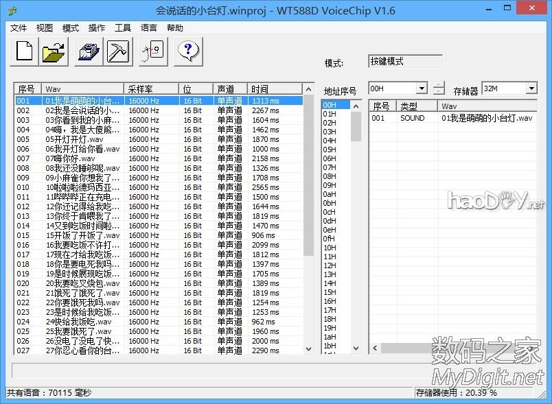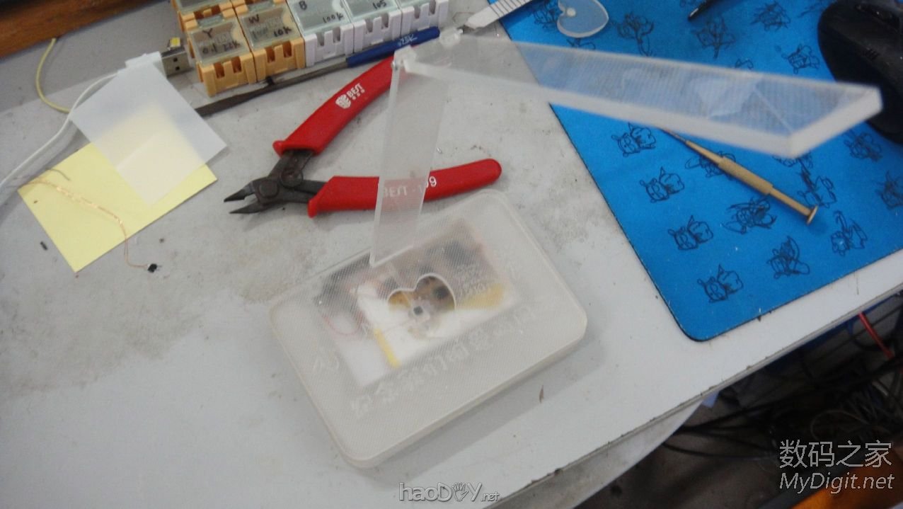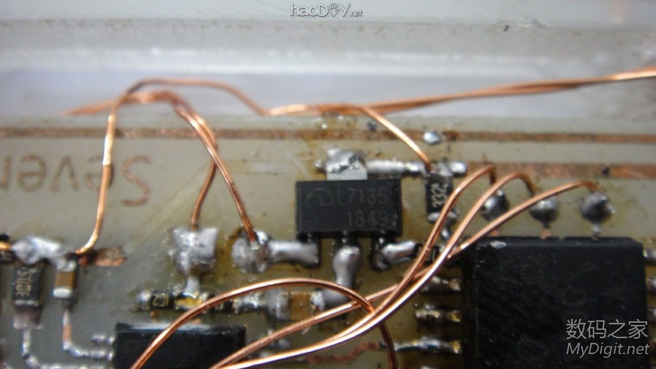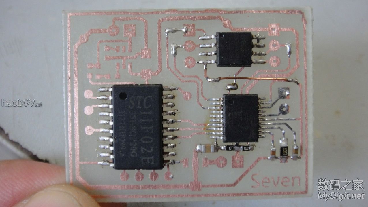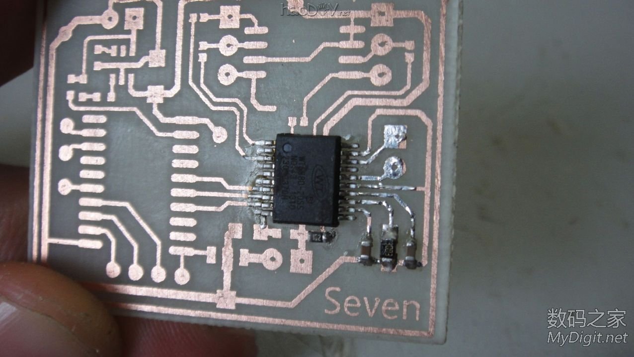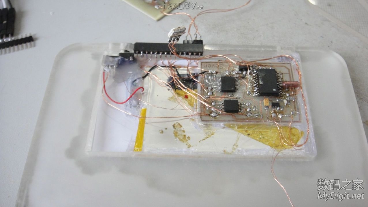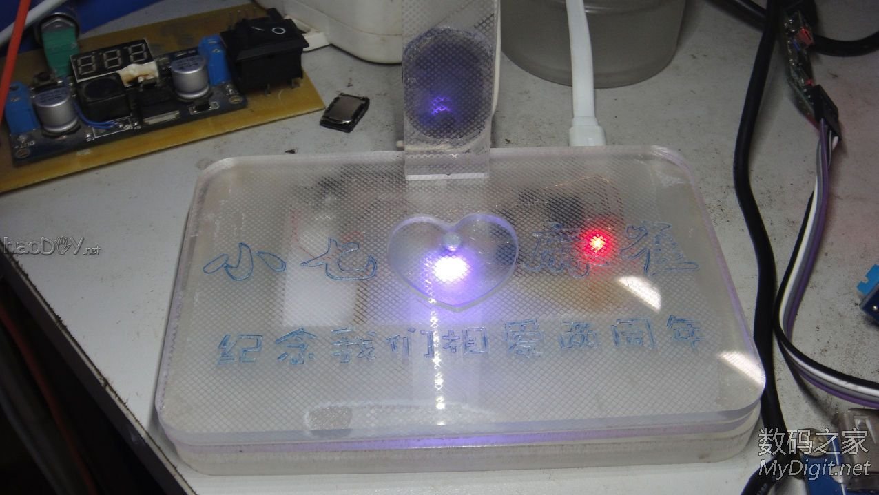 【前 言】 上个学期,小七的女朋友不知道从哪搞来的一个莫名其妙的想法,让我帮她做一个【会说话的小台灯】,不然就有我好看。。。o(╯□╰)o。。。在女朋友我威胁加利诱下,不对,呸,只有威胁,哪有利诱!在女朋友的威胁之下,我只好含着屈辱的眼泪,被迫答应了。 事情比较多,断断续续做了差不多一个学期,也没做好,趁着现在放假,把它完成了,期间有些照片不见了,大家凑合着看吧。 【正 文】 一开始倒没怎么规划,记得以前拆过一个LCD显示器,里面的背光板我还保存着,干脆拿来做台灯的外壳算了。于是,先上 Solidworks 来画结构图。 新建一个部件 ![]() 画一个圆角矩形,作为底座 ![]() 拉伸成立方体 ![]() 在上面刻上字,小麻雀。。。我对我女朋友的称呼 ![]() ![]() ![]() 在中间挖空一个心形,这个心形有什么用呢?先不告诉你~ ![]() ![]() ![]() 再新建一个部件,画出一个心形 ,和上面挖空的大小差不多一致 ![]() ![]() 在心形的中间挖一个小圆槽 ![]() 再新建一个部件,作为台灯支架 ![]() 再新建一个。。。 ![]() 然后把所有零件拼装起来,形成台灯的样子。 ![]() 渲染的效果,不会弄,很难看的,哈哈 ![]() 讲到电路板了,那咱继续。。。 接着,就是苦逼的写程序了,从8月1号开始写,刚开始是用STC15系列8个引脚的单片机,结果调试的时候老出现问题,中断进不去,LED点不亮,电路板也检查了好几次,也找不到原因,一恼火就换成STC11F02E了,于是又重新画板,拆下来,焊接。。。写程序,调试,写程序,调试。。。 ![]() 【 语 音 篇 】 先在记事本上写上10段开灯时播放的语音,10段低电压时需要充电的提示语音,以及10段检测到充电时播放的语音,10段关灯时播放的语音 ![]() 接着打开 Adobe Audition ,然后把他们都录起来,录完一句停顿一下,方便后期处理。#p#分页标题#e# ![]() 用 Adobe Audition 把刚刚录好的语音一段一段的选中,并导出成12000Hz,16位深度的WAV,这样WAV的体积和清晰度都能得到保证,而且语音的话用小喇叭放出来都差不多 ![]() 打开 WT588D 的上位机,把所有的语音都拖进来,WT588D 最多支持 200多段语音,具体忘记了,我是这样设置的,开灯的10段语音放在 0x00 ~ 0x09 的地址里,0x0A~0x0F 先不用,如果以后想扩展了还有位置,需要充电的提示音放在0x10~0x19,充电检测提示音放在0x20~0x29,关灯的提示音放在0x30~0x39,然后在设置里把 WT588D 设置成三线串口控制模式 ![]() 设置好后编译成BIN文件,下载到外置 SPI FLASH 里面,这里有个小插曲,因为没用过WT588D,不知道这个BIN文件是通过编程器直接烧写进FLASH,还是先下载到WT588D里,WT588D再把它处理,存进FLASH里面,于是去问厂家客服,尼玛,他说要用他们的编程器才能下载,一个编程器要200,我靠!当时我就不乐意了,淘宝才卖30,怎么到你这里就变成200了,坑人吗?然后就研究淘宝上的WT588D编程器,发现接线跟编程器烧写FLASH差不多,只是多了根RST线,根据WT588D的数据手册,知道这个是用来复位用的,结合他们宣传的,可在线把语音烧写进FLASH,我猜应该是烧写时,一直给WT588D的RST端复位,等编程器把BIN烧写进FLASH后再恢复,经过试验,的确是这样,哇咔咔,又省了30快+10块邮费 用普通的SPI FLASH 编程器就可以,这个是当初刷路由时买的,现在派上用场了,把编程器和FLASH连接起来,然后把ET588D 的 RST端接地,打开编程器软件,加载编译好的BIN文件,烧写进去就OK了。 ![]() 【 综 合 调 试 】 把所有外设接起来,进行调试,其中包括 LED照明灯,RGB 状态灯,以及小喇叭,霍尔开关(用来开关台灯用的),台灯的功能是这样的: 【1】将心形的那个钥匙放入台灯的心形缺口后就会开灯,喇叭随机播放一段开机语音,接着LED照明灯从0渐渐增加到180(0-255级的亮度,没做LED的亮度补偿,因为51单片机的速度不够),照明灯亮起后,RGB状态灯也从0开始亮到180,然后RGB状态灯开始七彩呼吸灯,从红色缓缓亮起-(黄色过渡)-绿色-(天蓝色过渡)-蓝色-(紫色过渡)-熄灭,就跟七彩LED差不多的那种。 【2】如果按下调光按钮,则LED照明灯的亮度会变亮,最亮后又会变到最暗,接着又变到最亮,直到按钮松开。 【3】当电压低于3.5V时,单片机会检测到并产生中断,这时候就随机播放需要充电的语音,每隔5分钟提醒一次,如果此时插入 Micro USB 充电,则单片机也会检测到,并随机播放一段正在充电的语音。 【4】如果把心形钥匙拿出缺口,那么单片机会关灯,随机播放一段关机语音,LED亮度会从当前缓缓减到0,这是由两种情况:(1)如果是电池供电,那么照明灯熄灭后,状态灯亮度也会渐渐减到0,单片机进入掉电状态,此时功耗很低。(2)如果是插有外部电源,那么照明灯熄灭后,状态灯亮度也会渐渐减到0,接着,状态灯会变成呼吸灯,灯的颜色是关灯前状态灯的颜色 说了那么多,有点晕没有? ![]() ![]() 调试完后开始组装,最底部是电池,然后上面是PCB ![]() 用锉刀把底座掏出一个 Micro USB 的充电口 ![]() 像这样 ![]() 充电正常 ![]() 接着,把单片机的串口,SPI FALSH 的编程口(方便以后升级程序以及更新语音),LED照明灯,喇叭线 外接到排针母座上 ![]() ![]() 霍尔开关,用来检测心形钥匙上的磁场,感应到就会开灯,感应不到就会关灯 ![]() 板子上特意开了个槽给它 ![]() 粘好霍尔开关 ![]() 霍尔开关下面是 RGB 三色LED,也就是 状态灯,装饰用的 ![]() 山寨的AMC7135,调试的时候烧了3个。。。o(╯□╰)o。。。。 ![]() 又打了两个孔,一个是电源自锁开关,如果长期不用,用牙签之类的捅一下背后的孔,可以把电