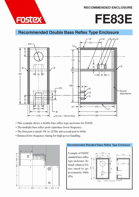 小型的书架箱体,在低频的表现是稍微欠缺,如果阁下比较喜欢低频,FE83E也有办法而不会令你失望的;二级倒相可以有效的把低频提升,Fostex原厂提供的二级倒相设计,第一级倒相的谐振点为127Hz,而 第二级倒相则可以提升到60Hz了。总的频响就可以到达了60Hz----30KHz的高水平了! 实际的试听效果,感觉低频是明显的多了份量,而你不会感觉是3寸小喇叭出来的声音,音场更加平衡! 同样的中密度MDF板加上枫木皮或红樱桃木皮 ,方便不同喜好的发烧友搭配家中不同风格的家私!