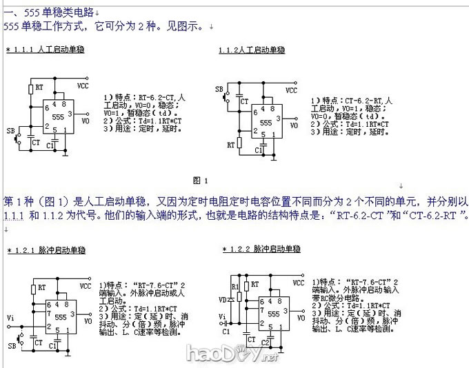 555单稳工作方式,它可分为2种。见图示。