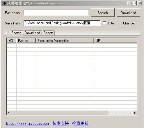 ![]() 软件操作说明: 1、本软件是纯绿色软件,无需安装,解压直接使用。 2、设置pdf保存地址,Save Path为保存地址,默认是在桌面,点后面Change,更改pdf保存地址。 2、Part Name 栏输入需要查找器件的名称(至少包含三个字符),然后单击“Search”或者回车, 搜索结果会显示在下面search信息栏当中,选择您需要的器件,双击,就会自动下载。没有下载过 的pdf会用“*”标注,下载过的,“*”就会消失。 4、下载过程中,Report信息栏显示状态。 5、下载完成以后,软件自动切换到DownLoad信息栏,双击文件名,自动打开pdf(前提是要安装有pdf阅 读软件)下载完,没有被打开的文件,会有“*”标注,打开过的文件“*”会自动消失。 6、Save Path后面有一个Auto勾选框,如果勾上,在Part Name 栏输入需要查找器件的名称,直接回车, 软件会自动下载搜索结果里的第一个pdf,一般来说,是最匹配的结果。 7、最后感谢成都迈硕电气有限公司对本软件的资助,本软件将一直更新下去,而且永久免费,开发出更 适合电子工程师的软件。 |